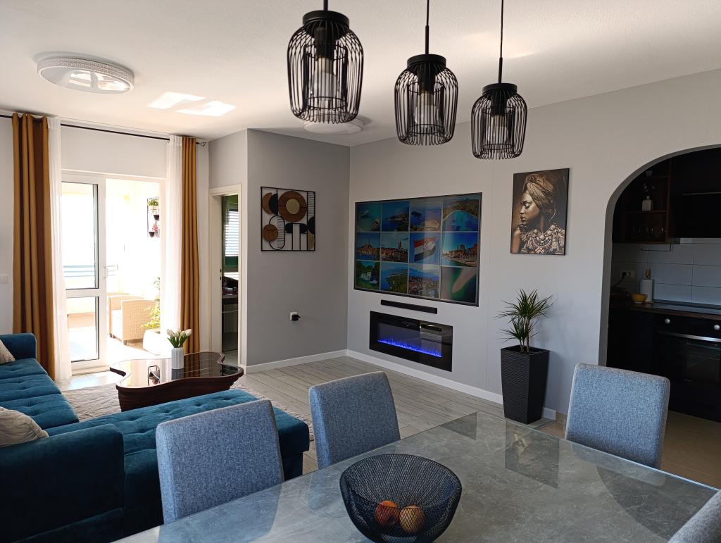 Domaćini su bili jako ljubazni i pobrinuli su se da nam ništa ne nedostaje. Apartman 4+1 lijepo uređen. Vrlo prostrano. Unutrašnjost čista i mirisna. Pogled s terase je nevjerojatan. Ne možeš prestati gledati u to. Kratka šetnja do plaže i centra. Veoma blizu. Ovdje smo proveli prekrasan tjedan i kada se vratimo u Tučepe, ostat ćemo samo ovdje