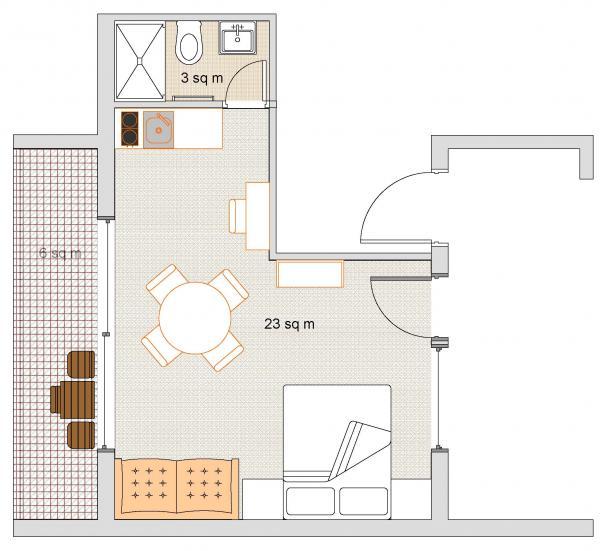 Smještaj za dvije osobe plus pomoćni ležaj (28 m2)