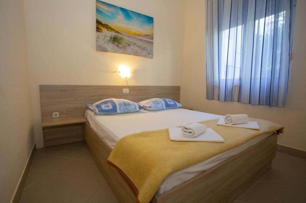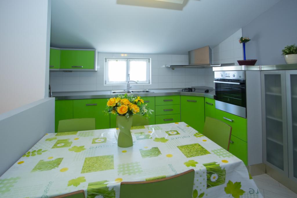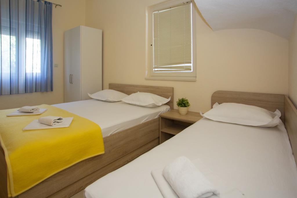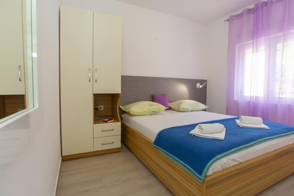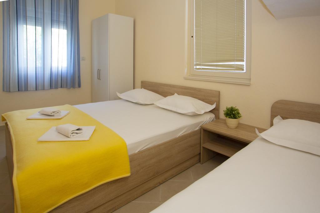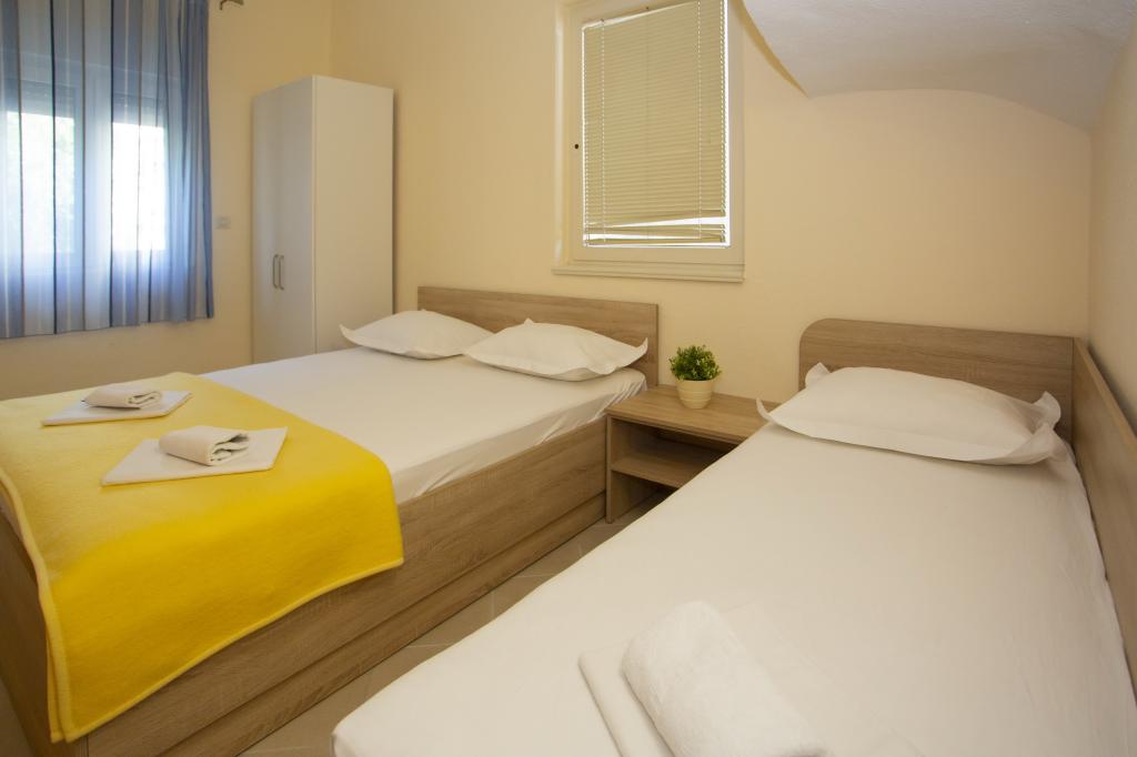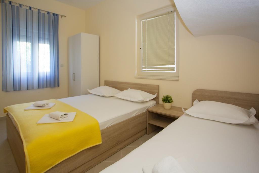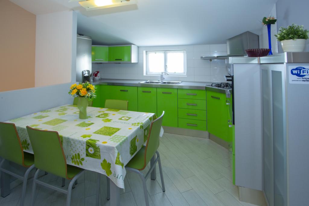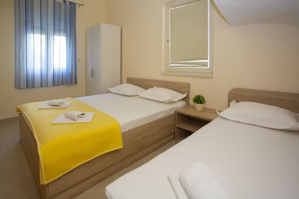 Kompletno opremljeni apartmani. Kuća se nalazi uz lokalnu prometnicu. Od objekta do plaže 3 minute pješice a 10 minuta do centra. Restorani i trgovina u okruženju 3-10 minuta. Parking je u dvorištu ispred kuće 20 metara.