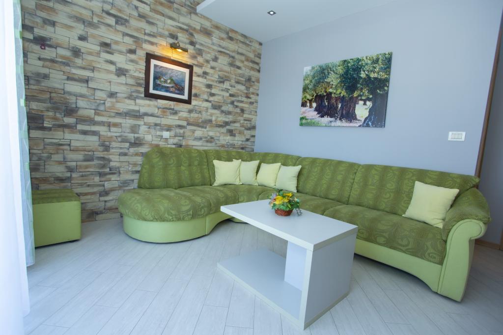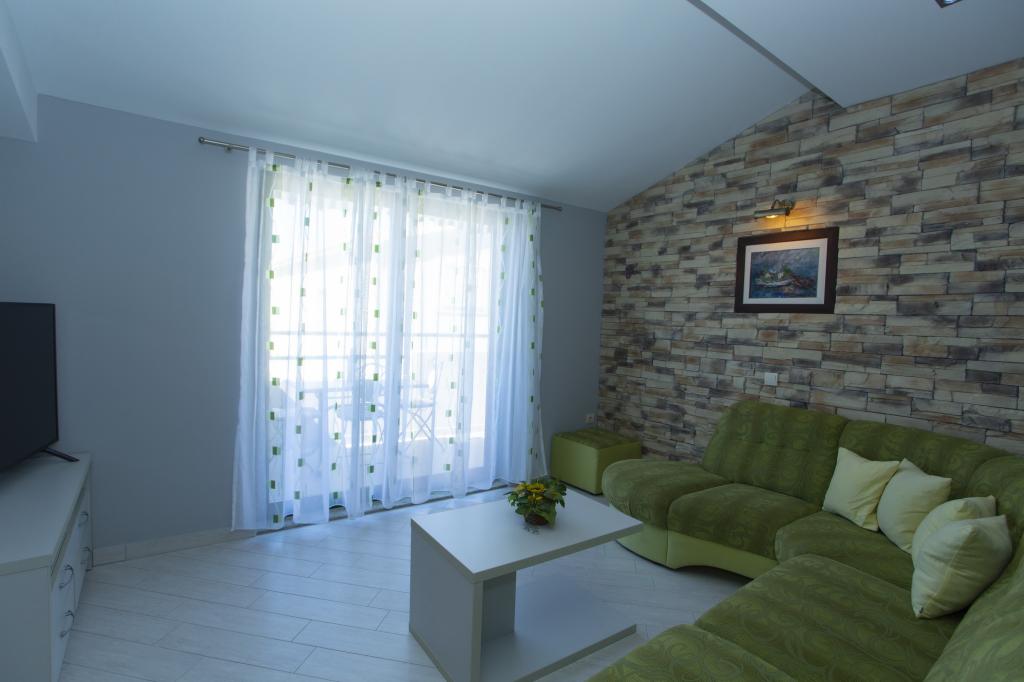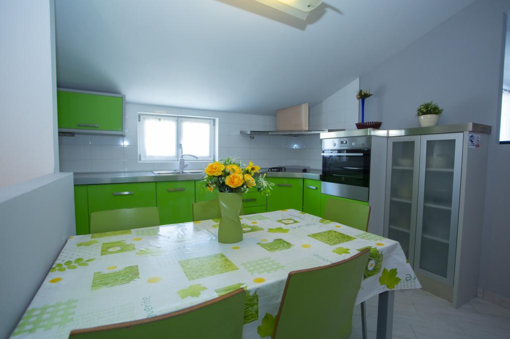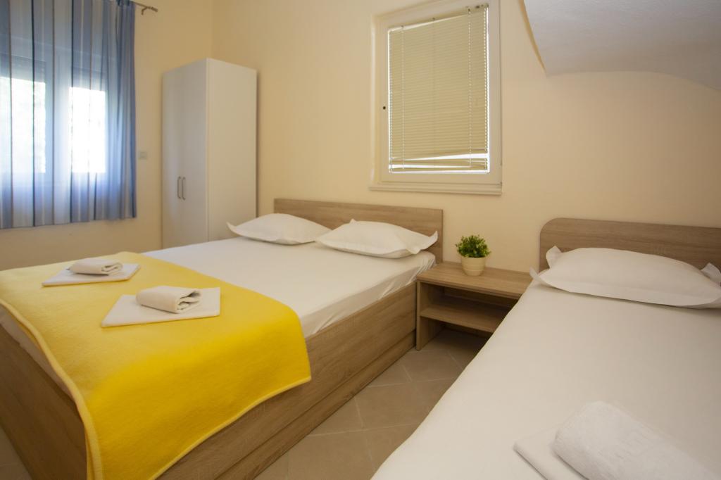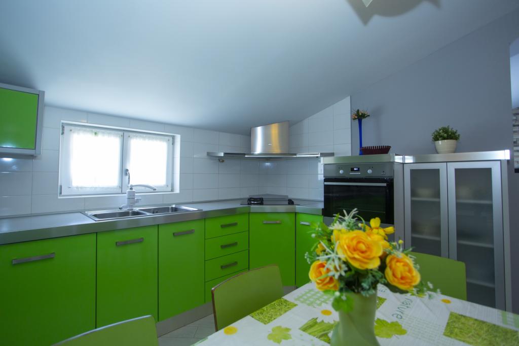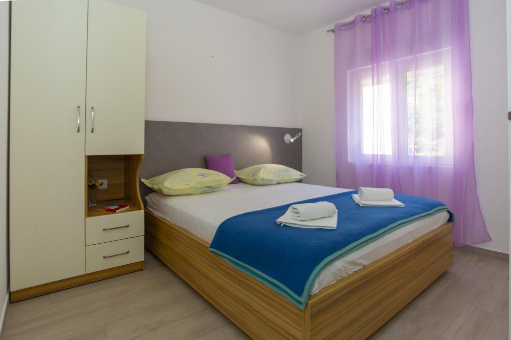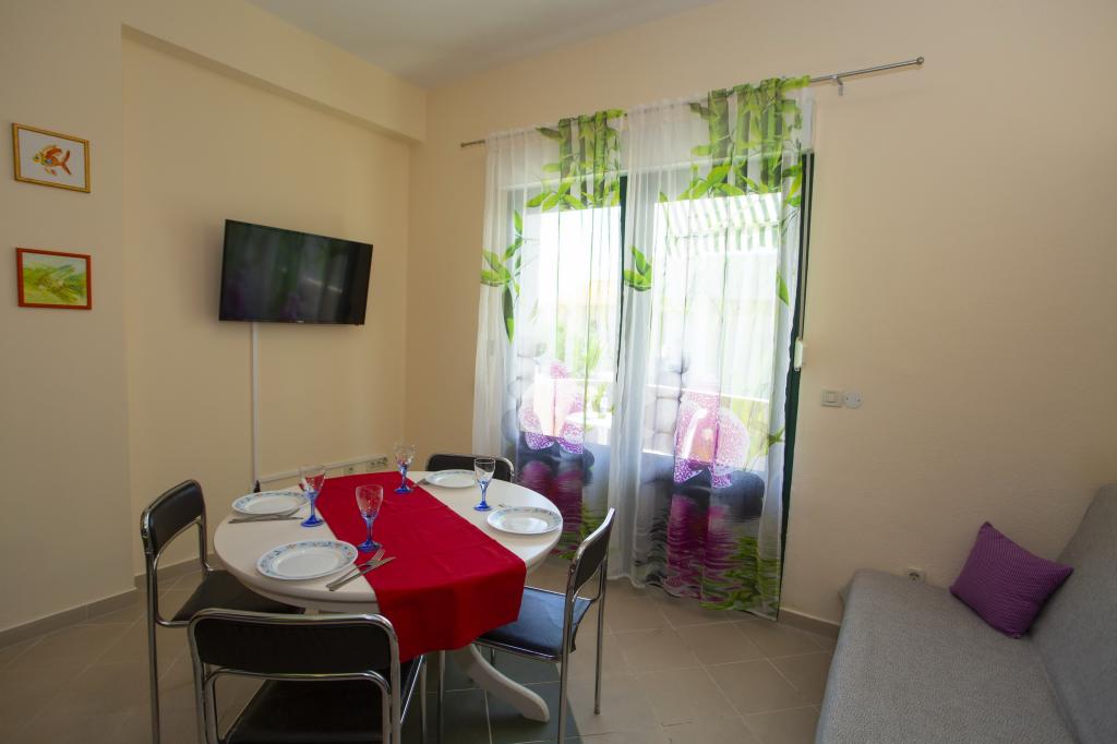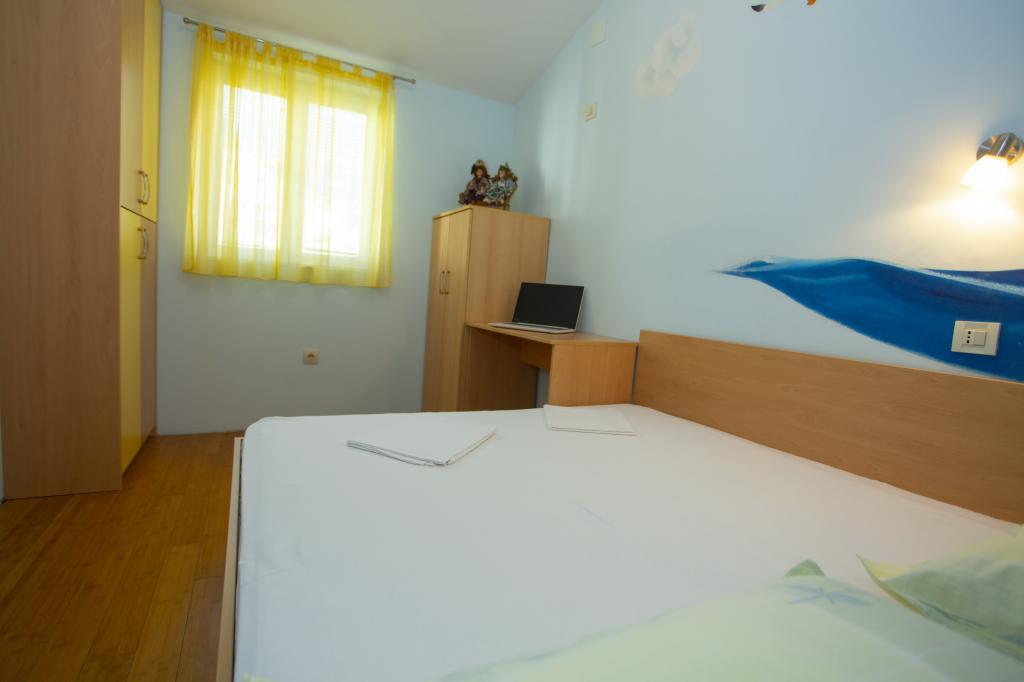 Kompletno opremljeni apartmani. Kuća se nalazi uz lokalnu prometnicu. Od objekta do plaže 3 minute pješice a 10 minuta do centra. Restorani i trgovina u okruženju 3-10 minuta. Parking je u dvorištu ispred kuće 20 metara.