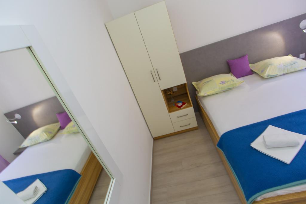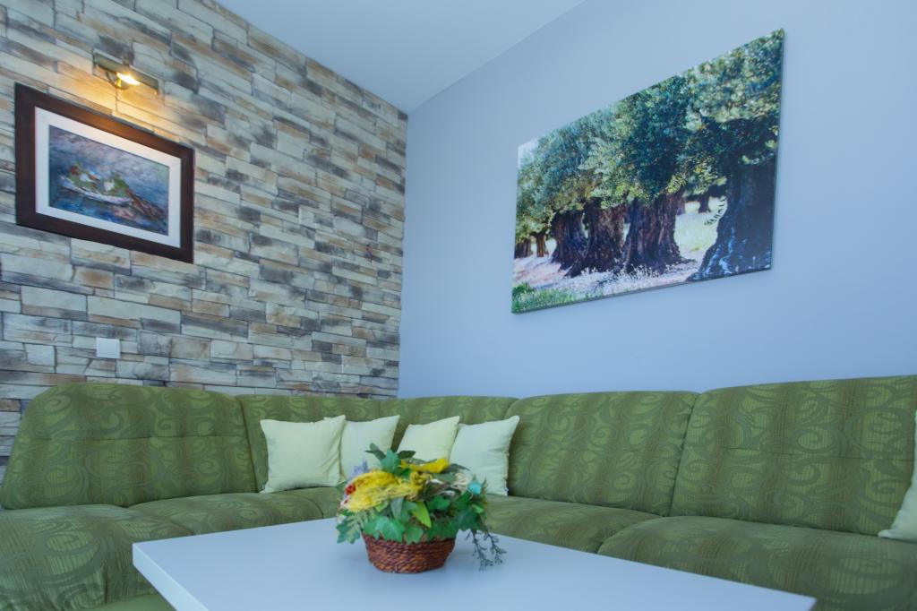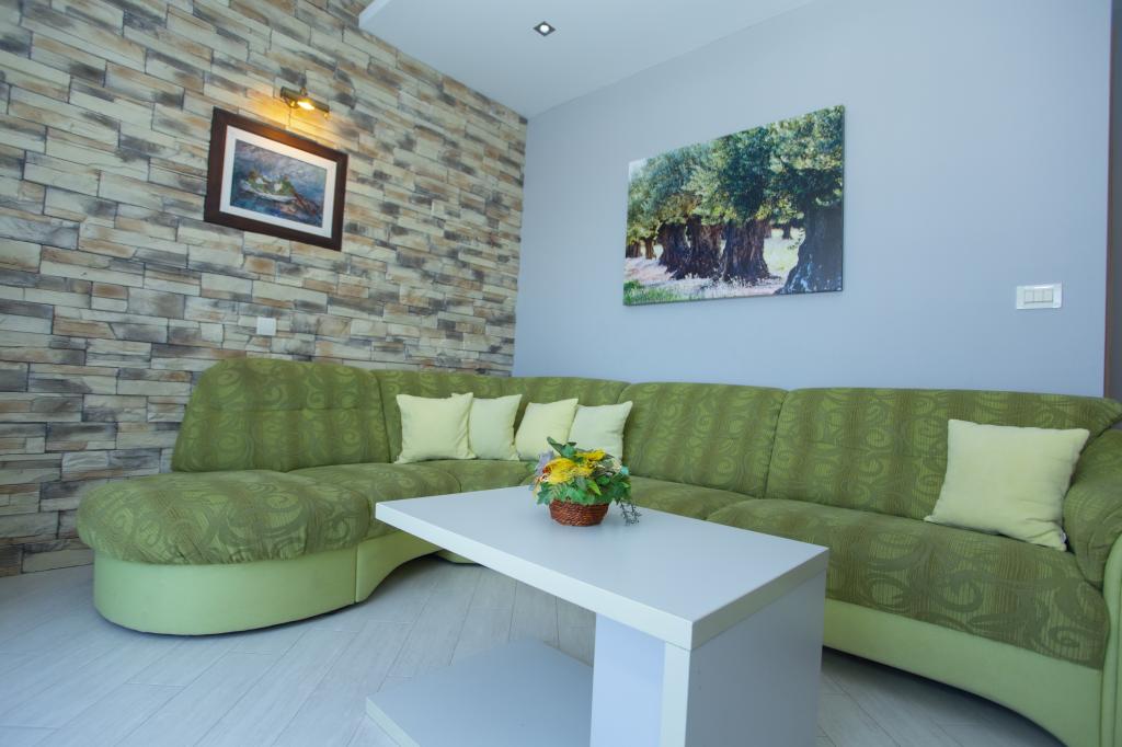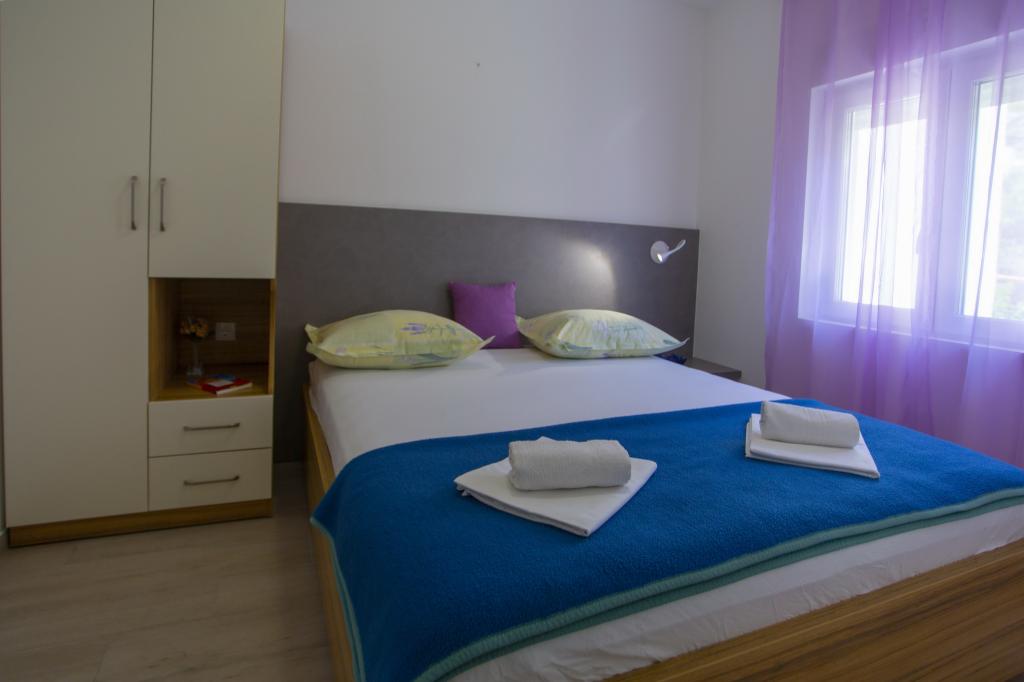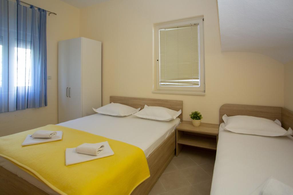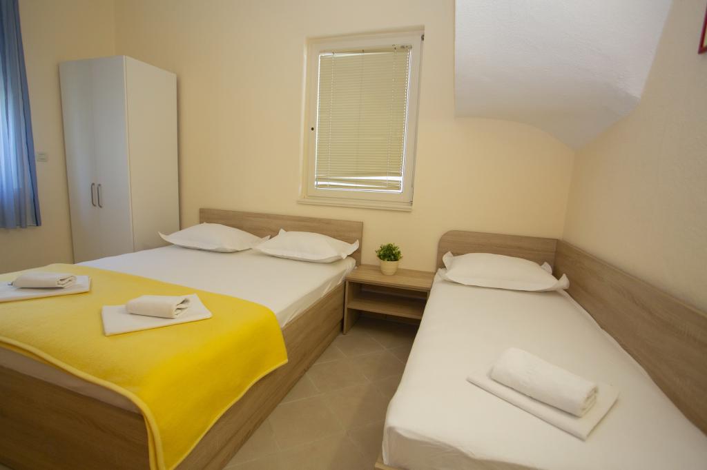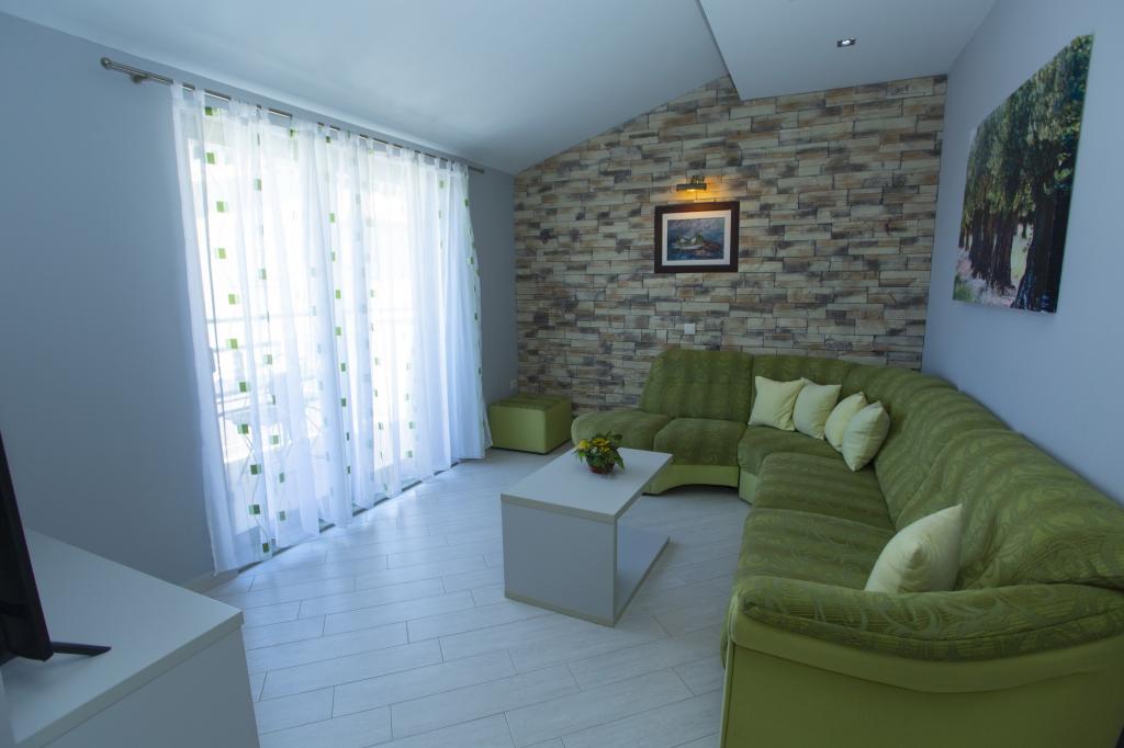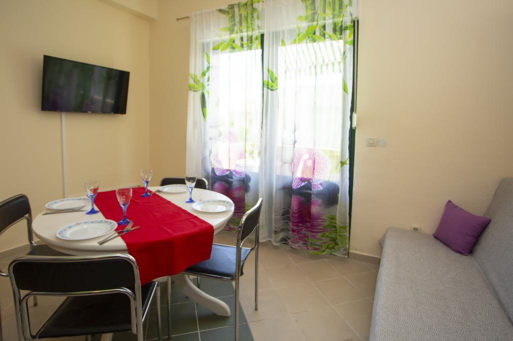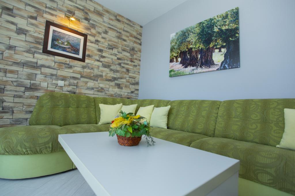 Kompletno opremljeni apartmani. Kuća se nalazi uz lokalnu prometnicu. Od objekta do plaže 3 minute pješice a 10 minuta do centra. Restorani i trgovina u okruženju 3-10 minuta. Parking je u dvorištu ispred kuće 20 metara.
