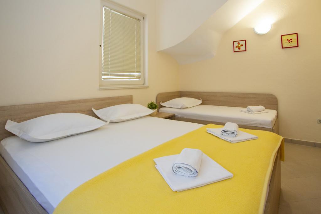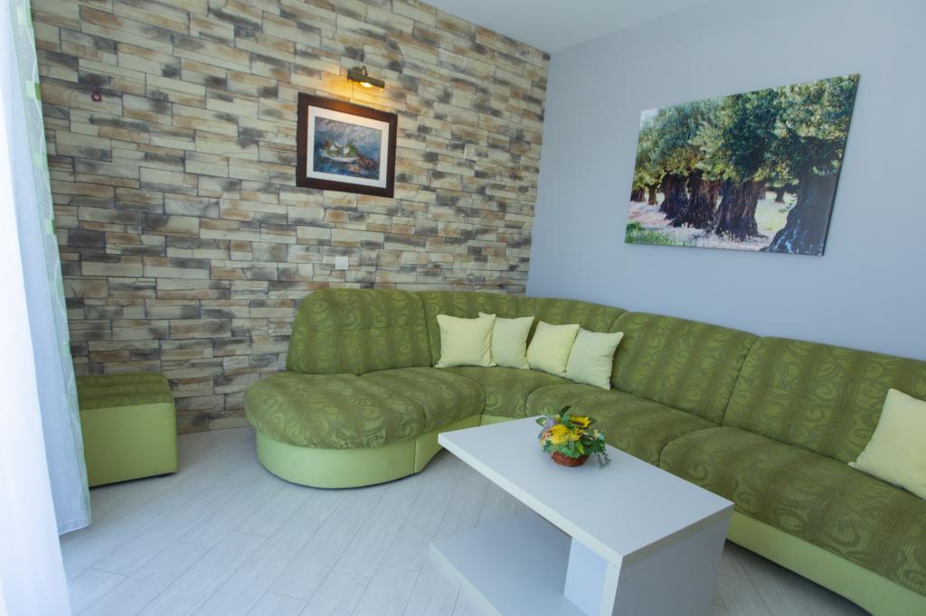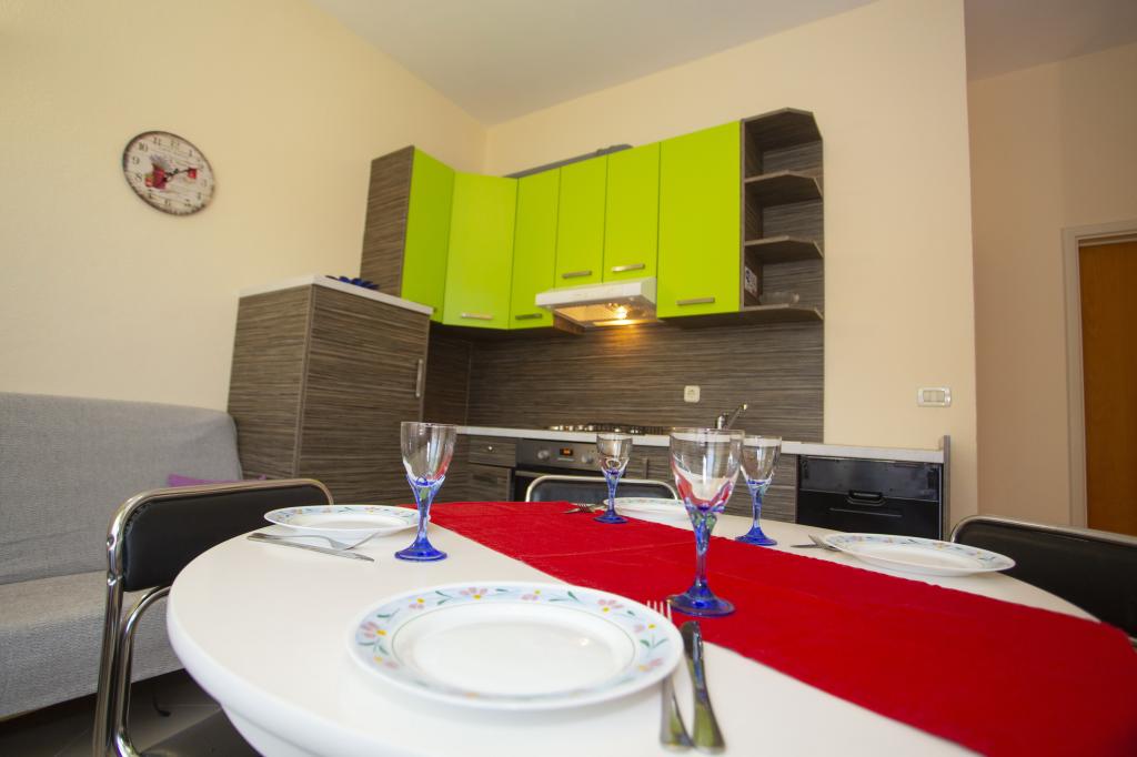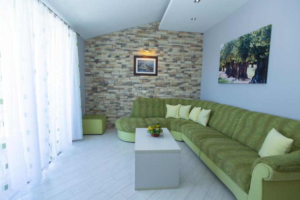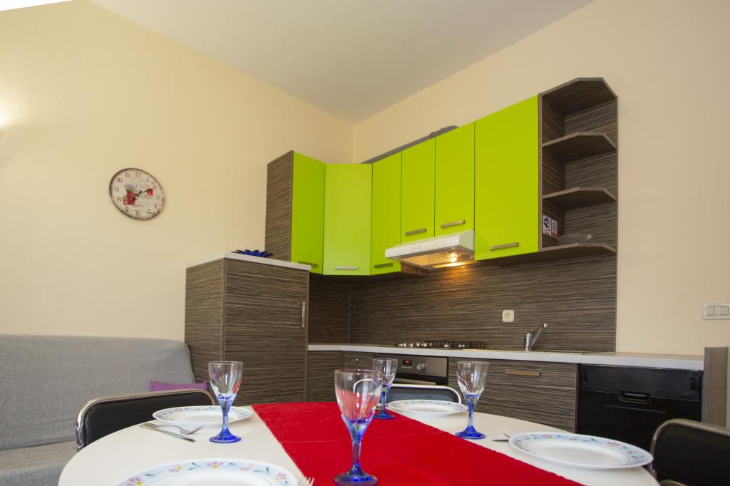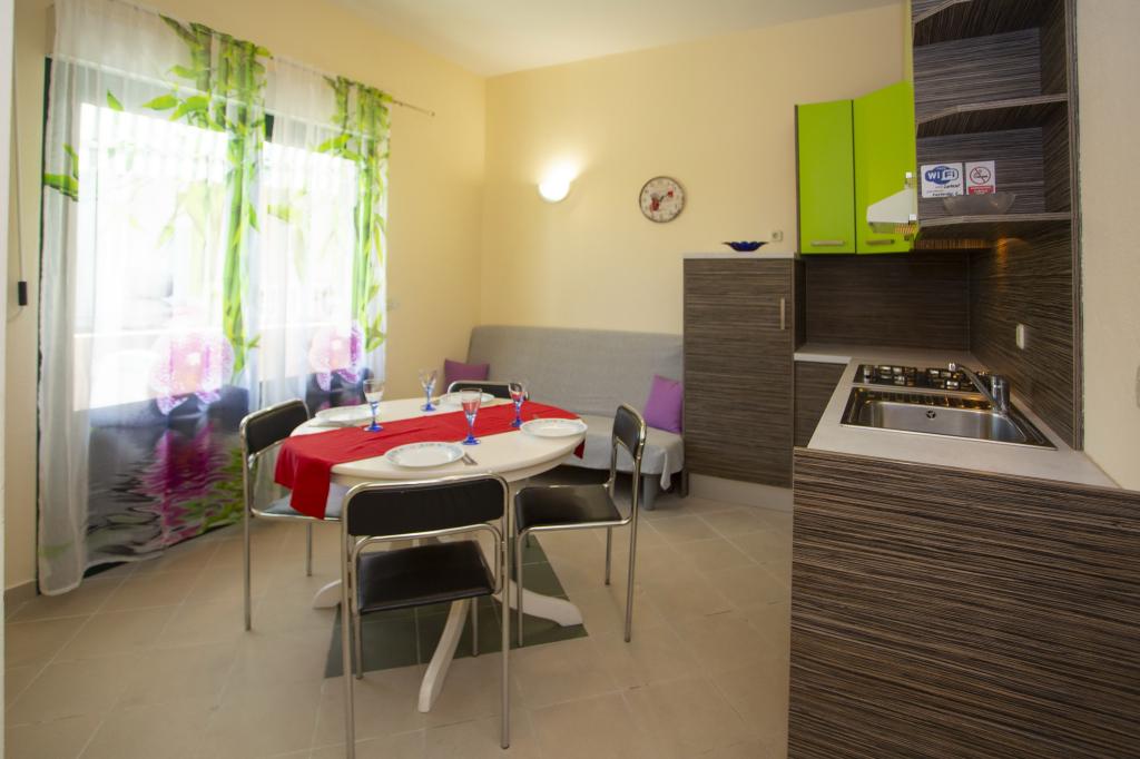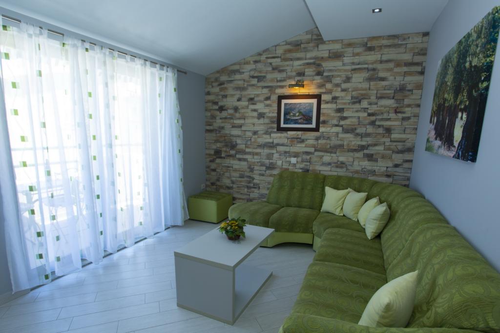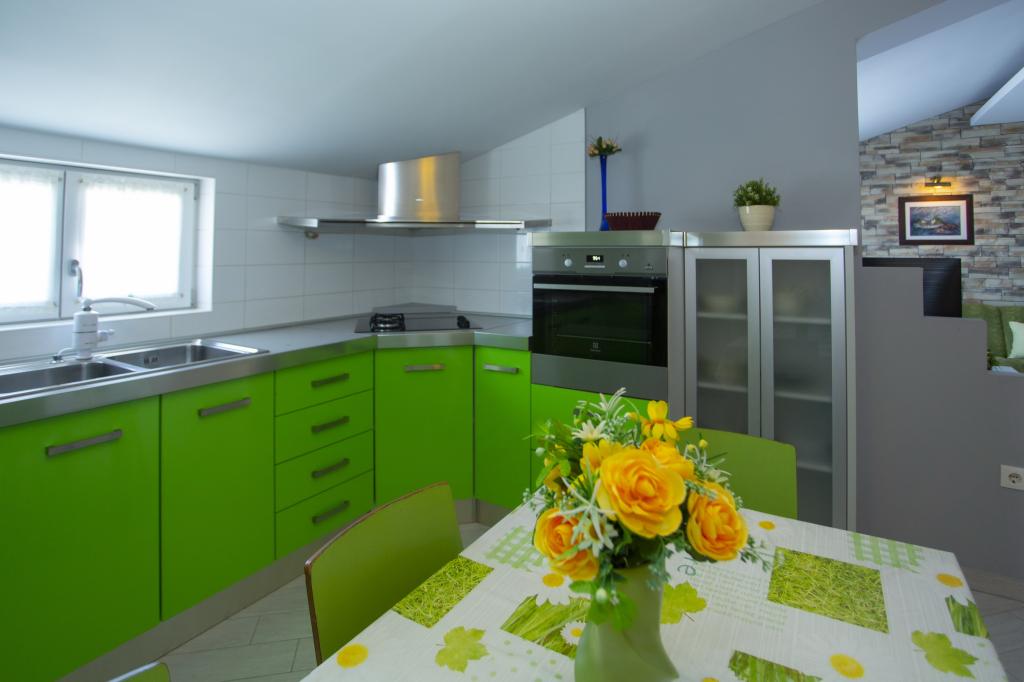 Kompletno opremljeni apartmani. Kuća se nalazi uz lokalnu prometnicu. Od objekta do plaže 3 minute pješice a 10 minuta do centra. Restorani i trgovina u okruženju 3-10 minuta. Parking je u dvorištu ispred kuće 20 metara.