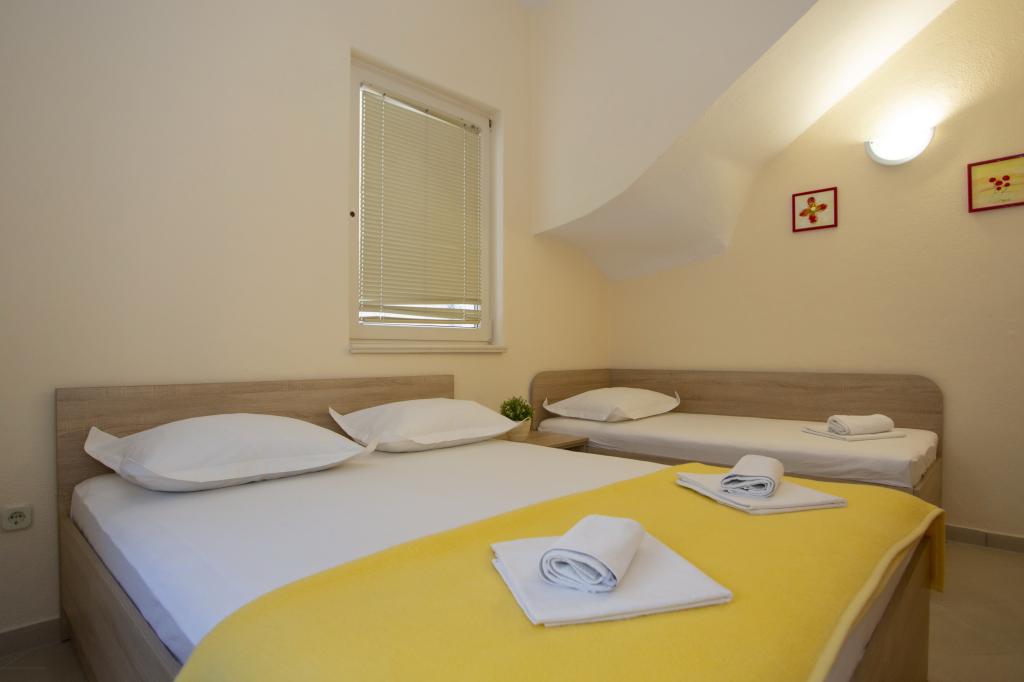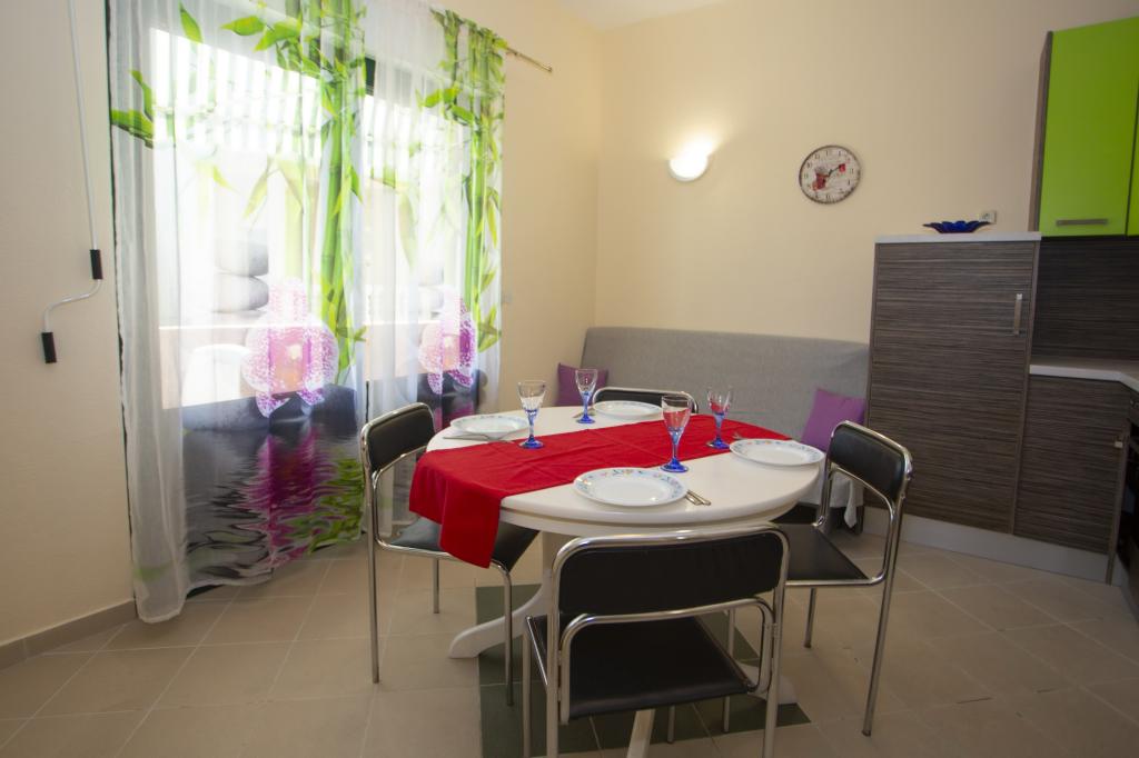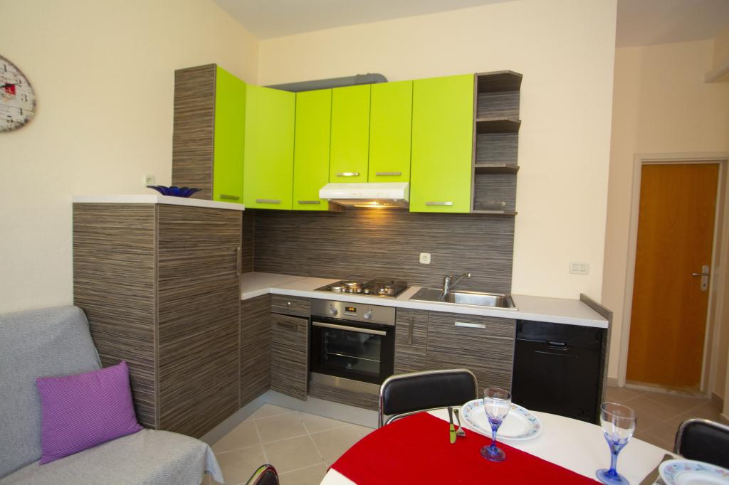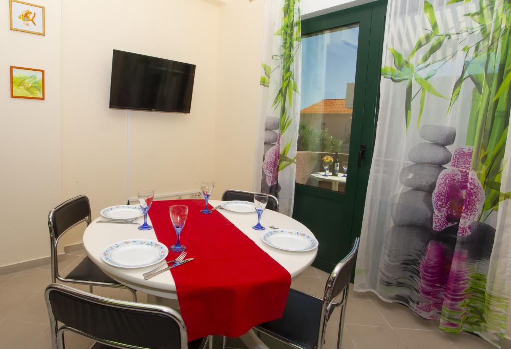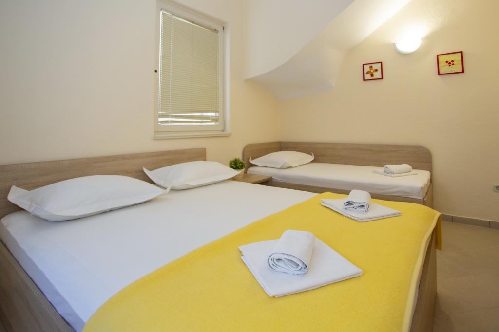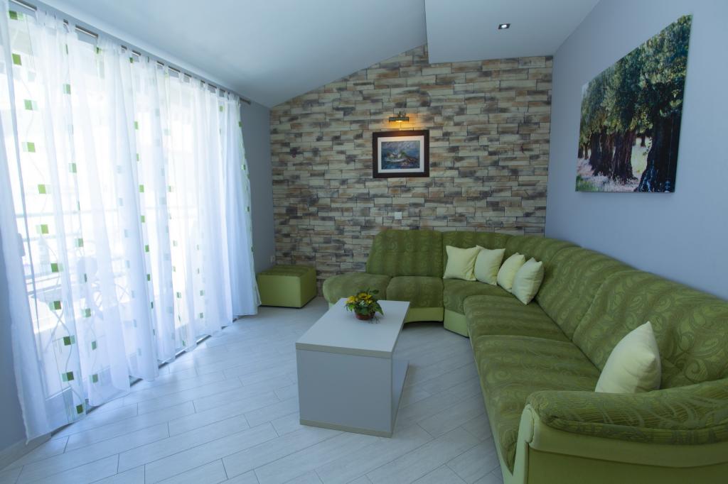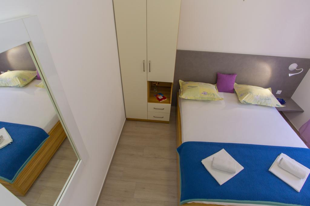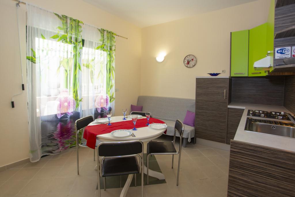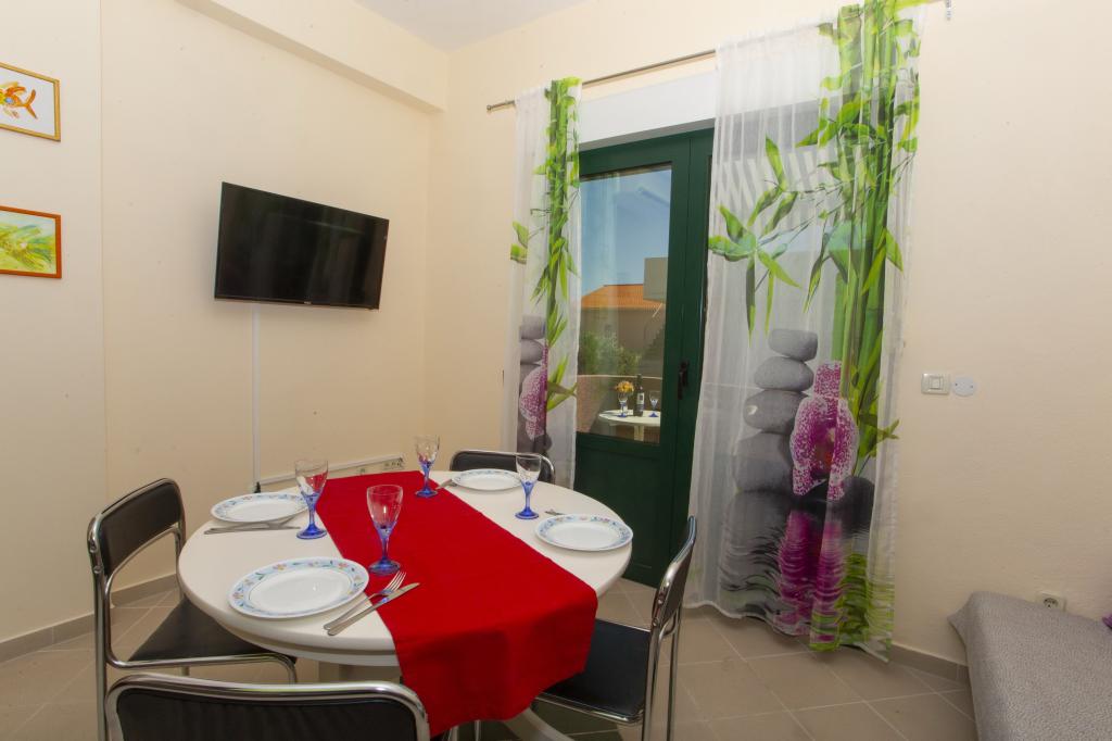 Kompletno opremljeni apartmani. Kuća se nalazi uz lokalnu prometnicu. Od objekta do plaže 3 minute pješice a 10 minuta do centra. Restorani i trgovina u okruženju 3-10 minuta. Parking je u dvorištu ispred kuće 20 metara.