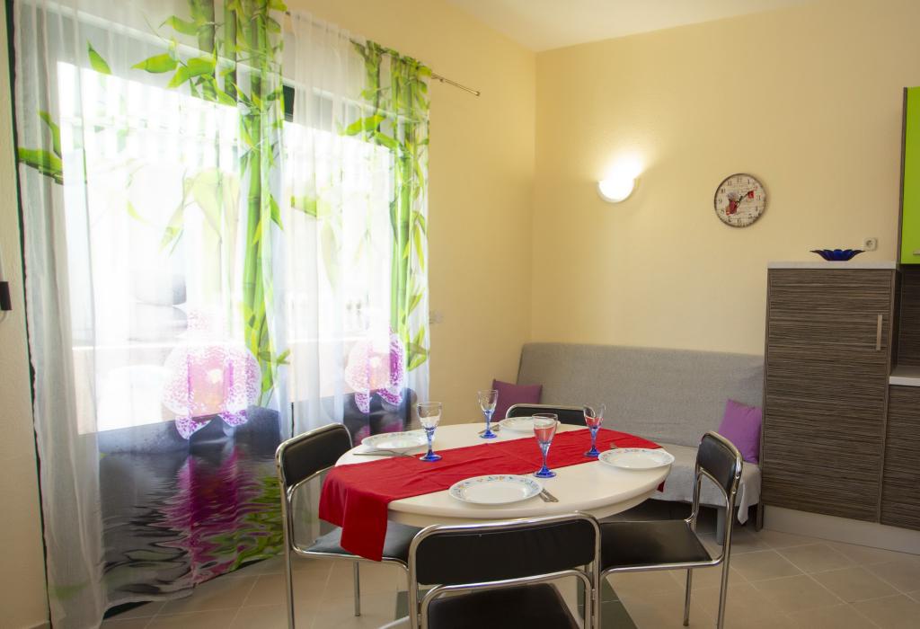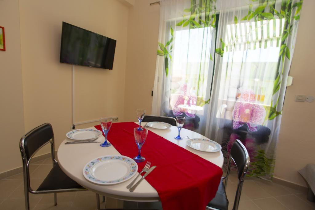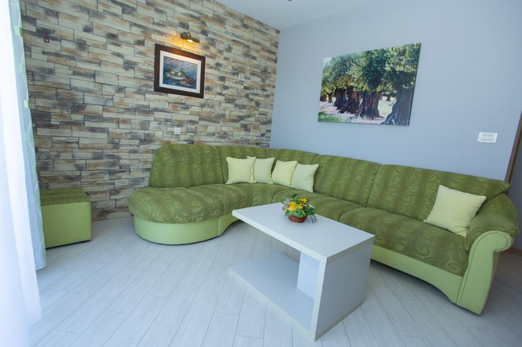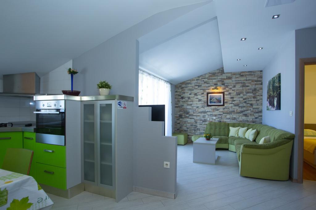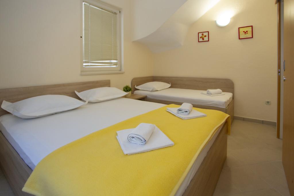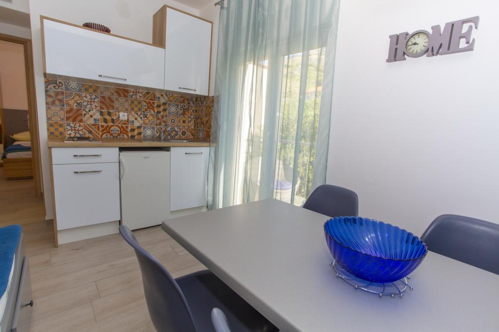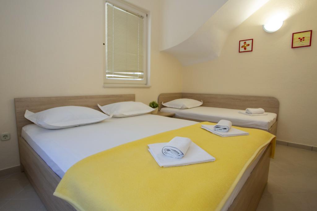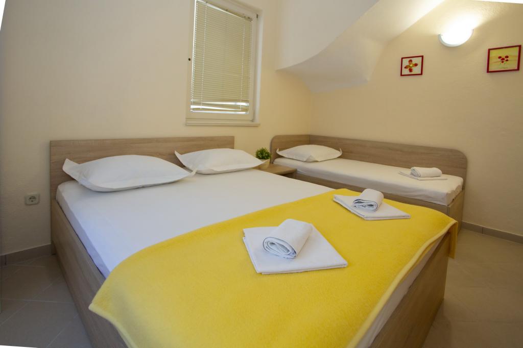 Kompletno opremljeni apartmani. Kuća se nalazi uz lokalnu prometnicu. Od objekta do plaže 3 minute pješice a 10 minuta do centra. Restorani i trgovina u okruženju 3-10 minuta. Parking je u dvorištu ispred kuće 20 metara.