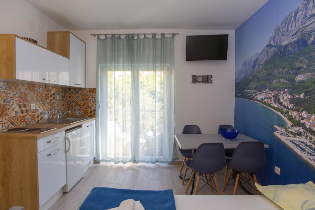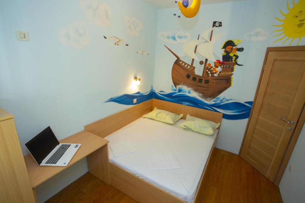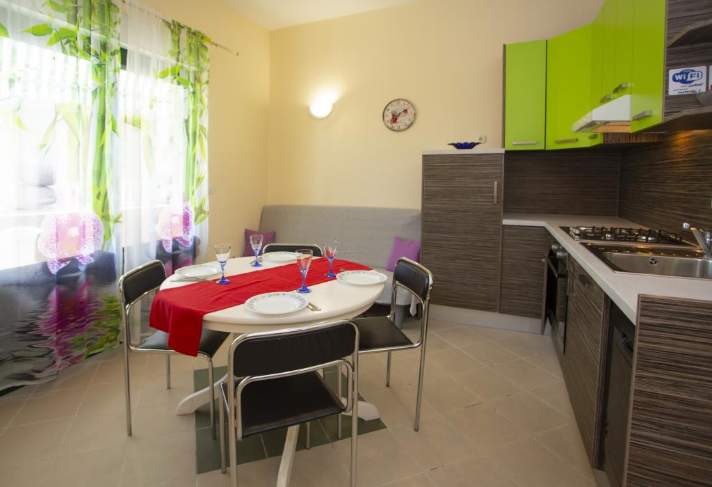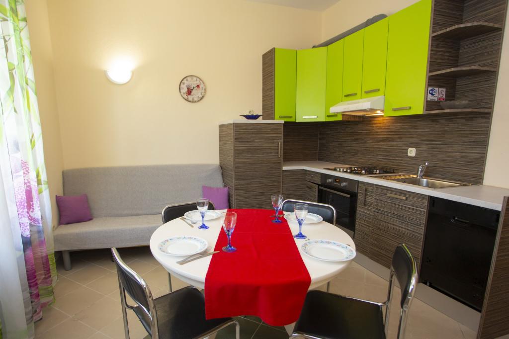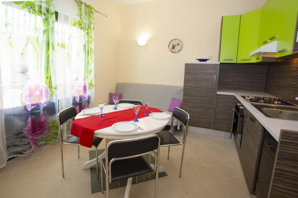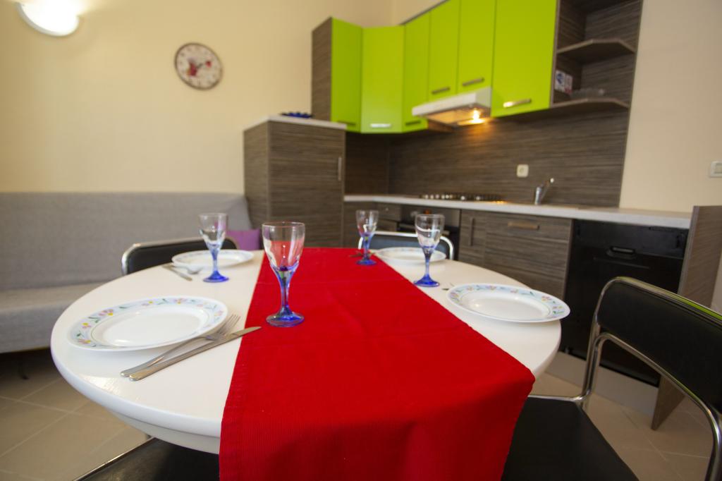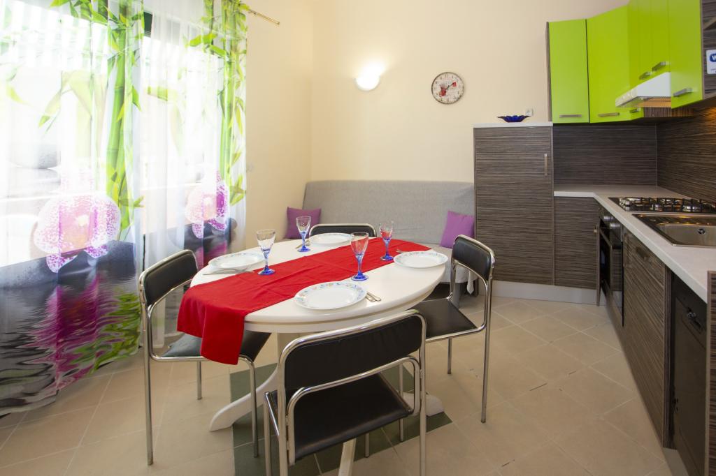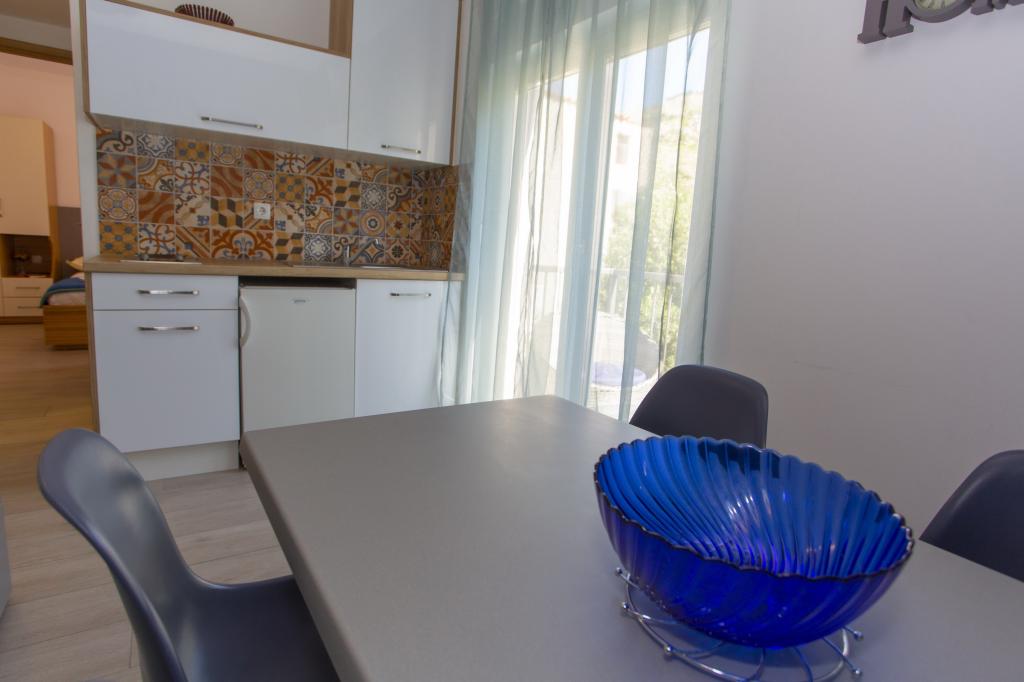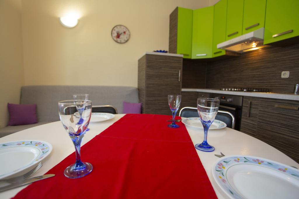 Kompletno opremljeni apartmani. Kuća se nalazi uz lokalnu prometnicu. Od objekta do plaže 3 minute pješice a 10 minuta do centra. Restorani i trgovina u okruženju 3-10 minuta. Parking je u dvorištu ispred kuće 20 metara.