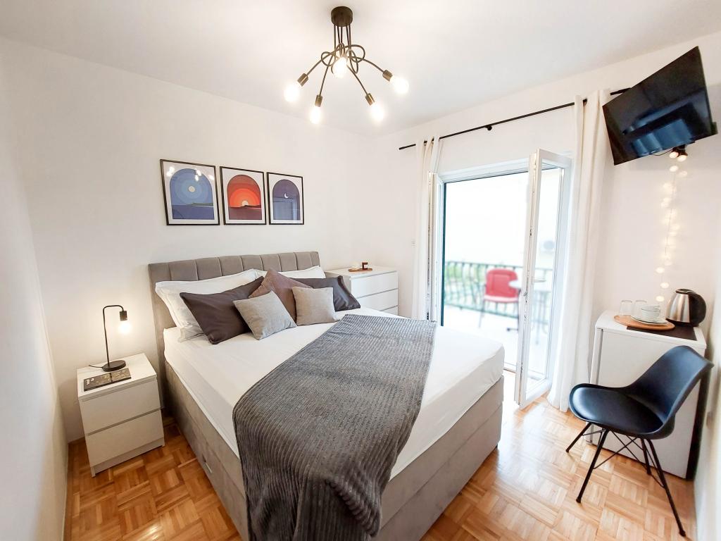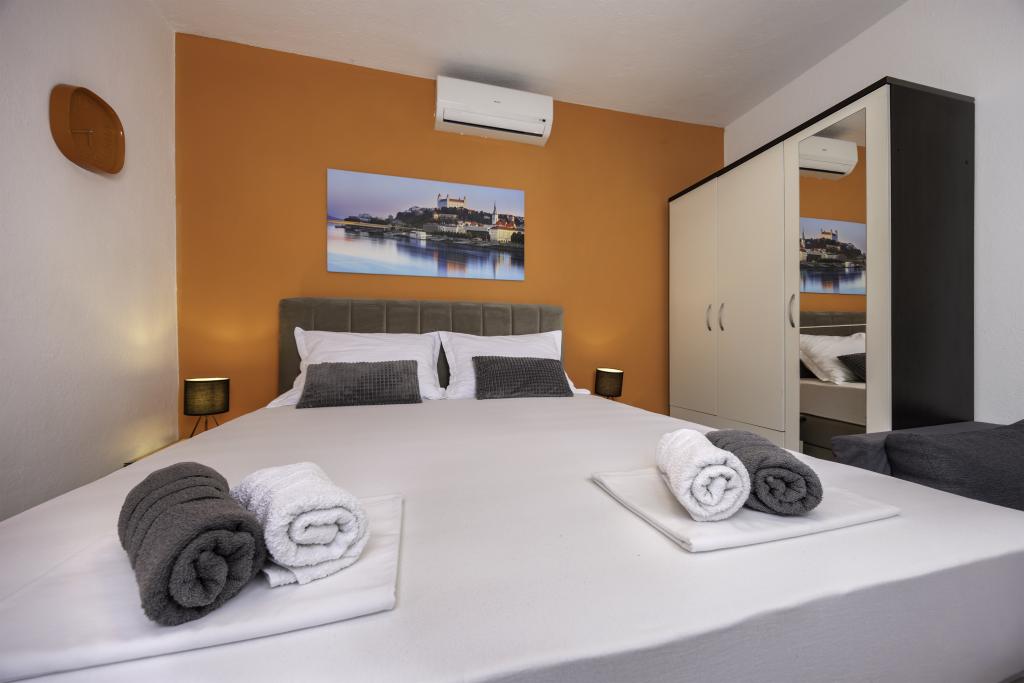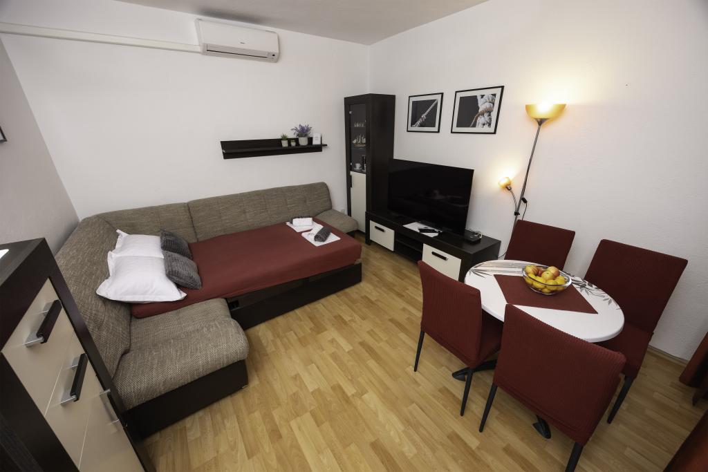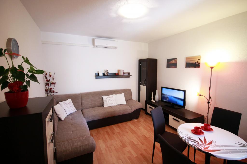 Apartman se nalazi blizu plaže, ca. 1-2 minute hoda. Klima-uređaj u obe sobe sa zasebnim daljinskim upravljaćem, balkon prema Biokovu, super parking. Gazde su bili jako ljubazni i prijatni. Apartman možemo preporućiti.