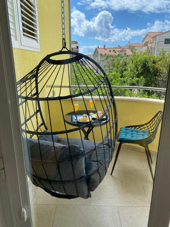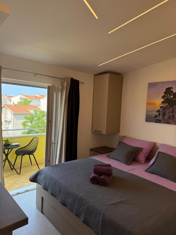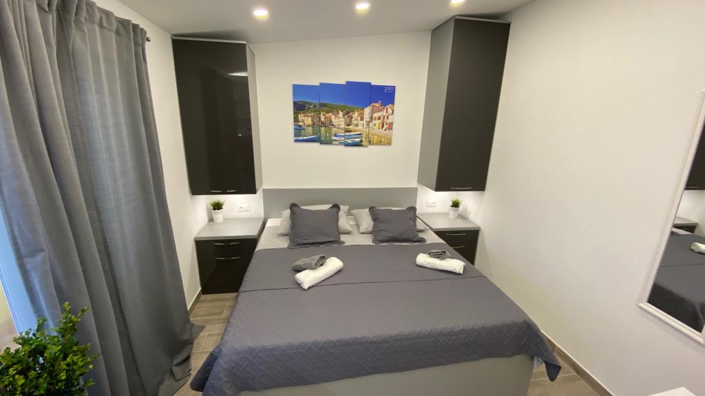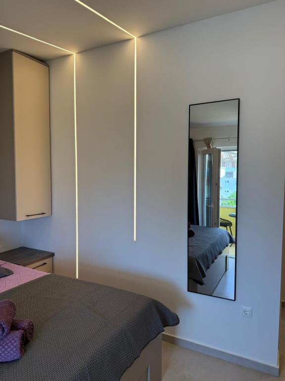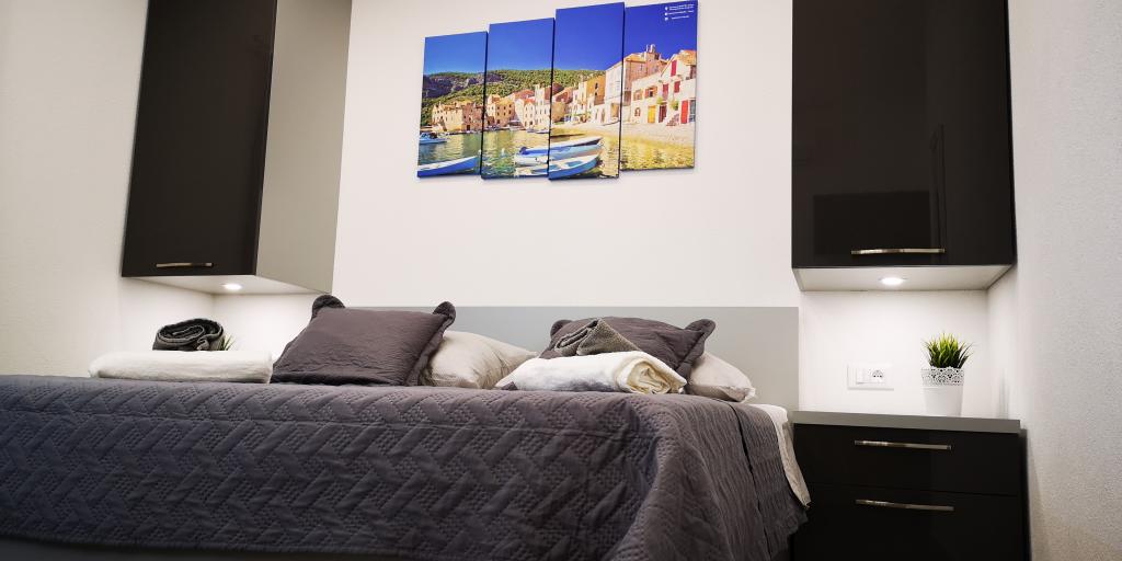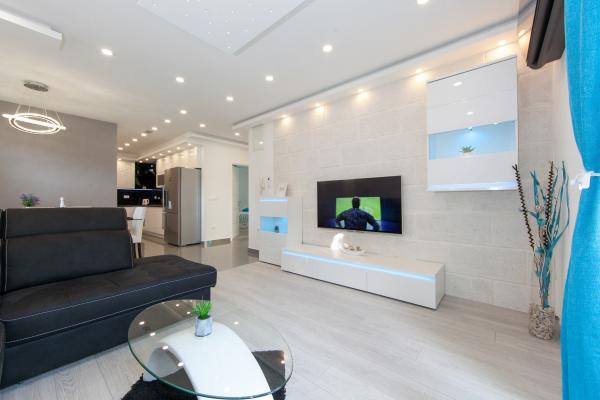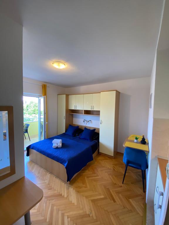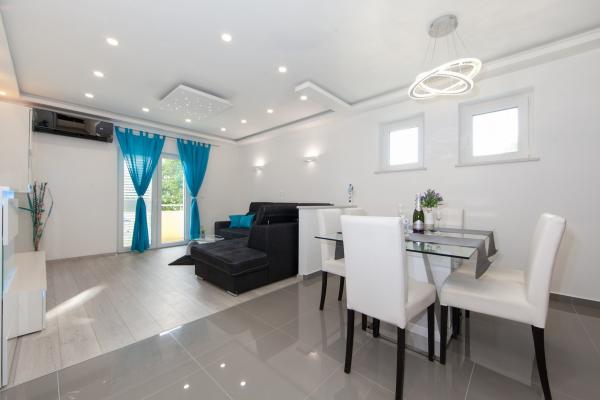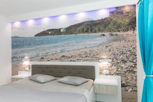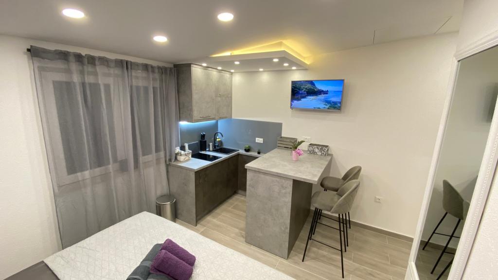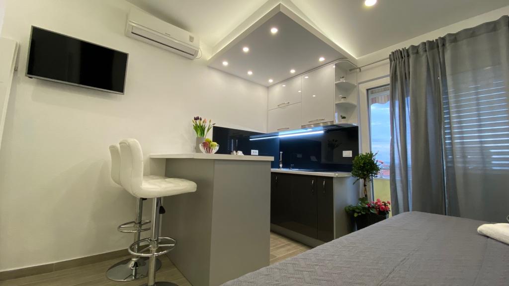 Luksuzno opremljen studio apartman**** za 2 osobe nudi sve što možete očekivati i više od toga. Moderno pokućstvo, kuhinja sa šankom, barske stolice, fantastična led rasvjeta, sva moguća bijela tehnika, smart TV, klima, balkon s pogledom na more i dječje igralište, sve je izuzetno uredno i čisto. Domaćini su fenomenalni ljudi. Vrlo ljubazni, nasmijani, susretljivi. 1. put ste tamo, a imate osjećaj kao da ste došli kod svojih dobrih, starih, prijatelja. A more i plaža... 100 metara od apartmana, kao i centar grada s trgovinama i restoranima. Sve je nadohvat ruke, a opet sam smještaj se nalazi u tišem dijelu kvarta. Nevjerojatna kombinacija ! Apsolutno sve preporuke !!!