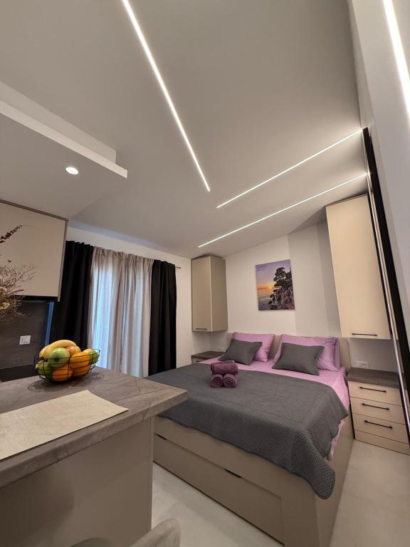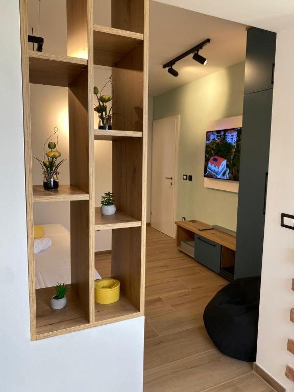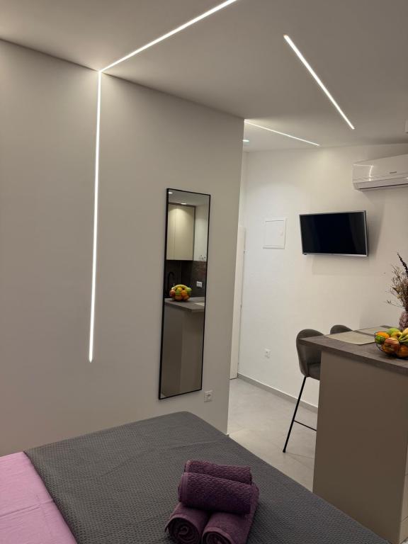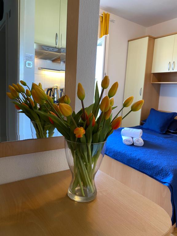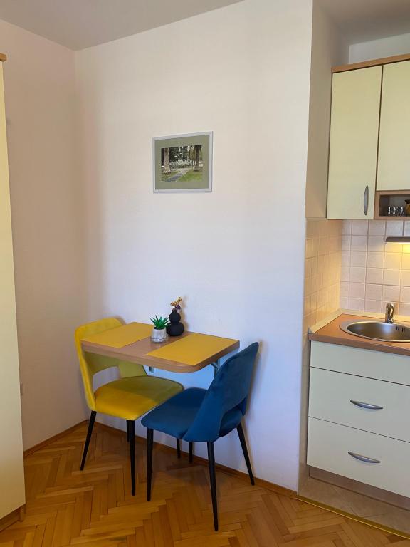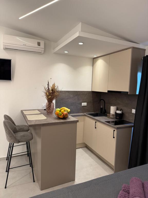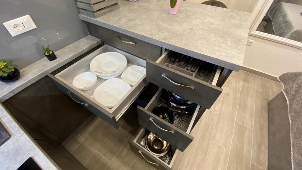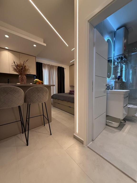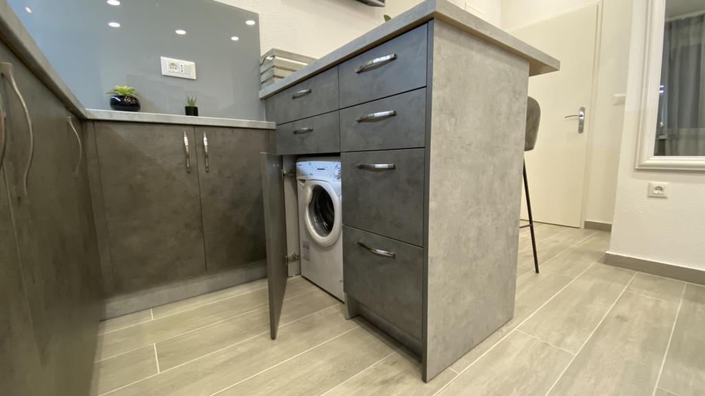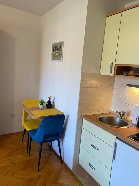 Luksuzno opremljen studio apartman**** za 2 osobe nudi sve što možete očekivati i više od toga. Moderno pokućstvo, kuhinja sa šankom, barske stolice, fantastična led rasvjeta, sva moguća bijela tehnika, smart TV, klima, balkon s pogledom na more i dječje igralište, sve je izuzetno uredno i čisto. Domaćini su fenomenalni ljudi. Vrlo ljubazni, nasmijani, susretljivi. 1. put ste tamo, a imate osjećaj kao da ste došli kod svojih dobrih, starih, prijatelja. A more i plaža... 100 metara od apartmana, kao i centar grada s trgovinama i restoranima. Sve je nadohvat ruke, a opet sam smještaj se nalazi u tišem dijelu kvarta. Nevjerojatna kombinacija ! Apsolutno sve preporuke !!!
