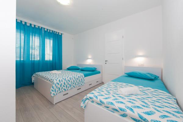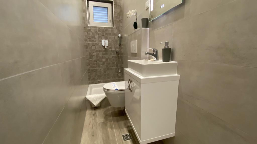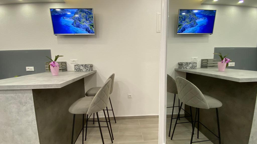 Prije svega ,ono najvažnije a to je ljubaznost i srdačnost domaćina i domaćice. Ljudi su toliko pozitivni i nasmijani da jednostavno prenose to i na nas ostale, otvoreni za sva pitanja i na raspolaganju 24/7. Dočekali su nas i ispratili, svaka čast! Što se sobe tiče u kojoj smo boravili, sve je uredno i čisto, dobili smo što smo očekivali. Plaža je udaljena manje od 2 minute, centar isto tako. Sve je u blizini što je vrhunski. Iza apartmana se nalazi dječje igralište. Preporučujemo svima kojima treba odmor, blizina sadržaja i da se osjećaju kao kod svoje kuće. Pozdrav za domaćine i vidimo se sljedeću sezonu!