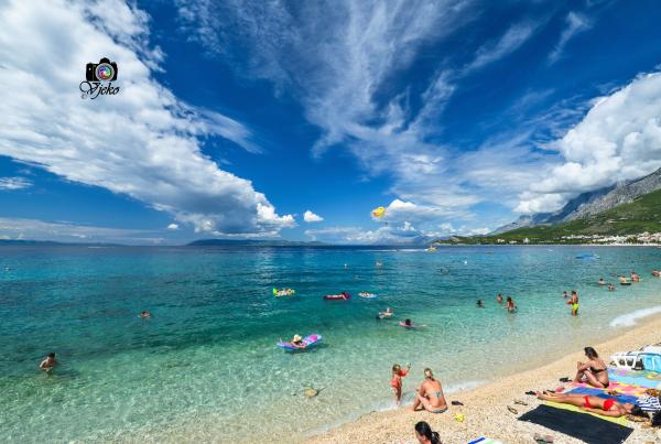 Suvremeno opremljeni apartmani u samom centru Tučepi. Drugi red od mora. Udaljenost od plaže 100 m. U krugu od 150 m se nalazi ambulanta, ljekarna, pošta, dućan, mnoštvo restorana i kafića, dječje igralište...