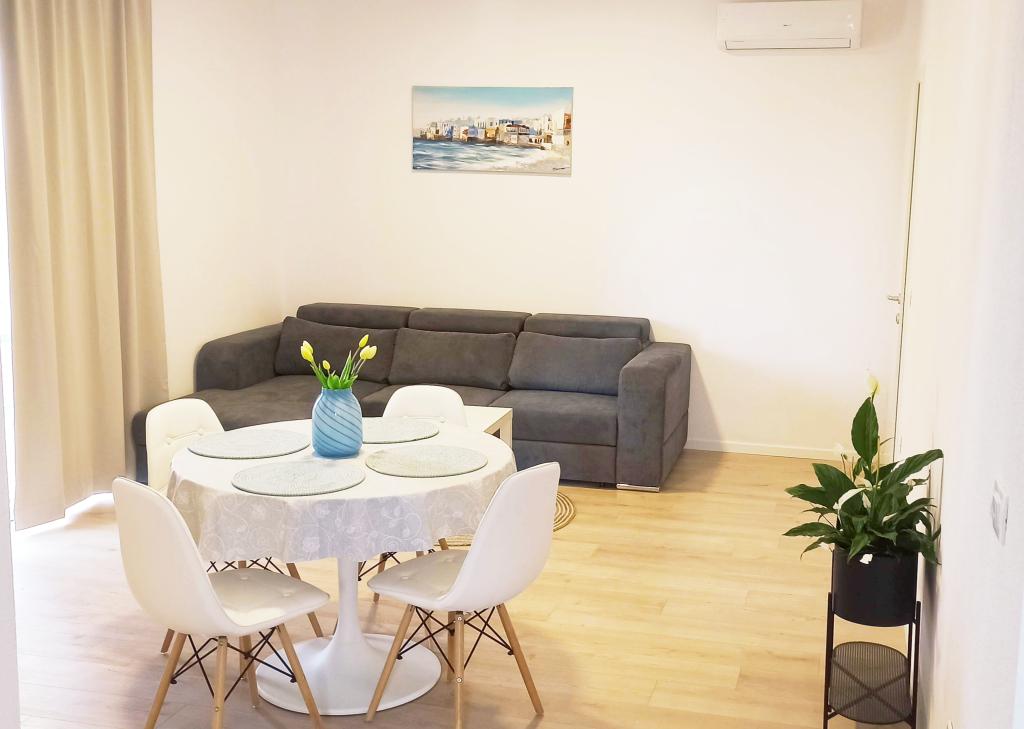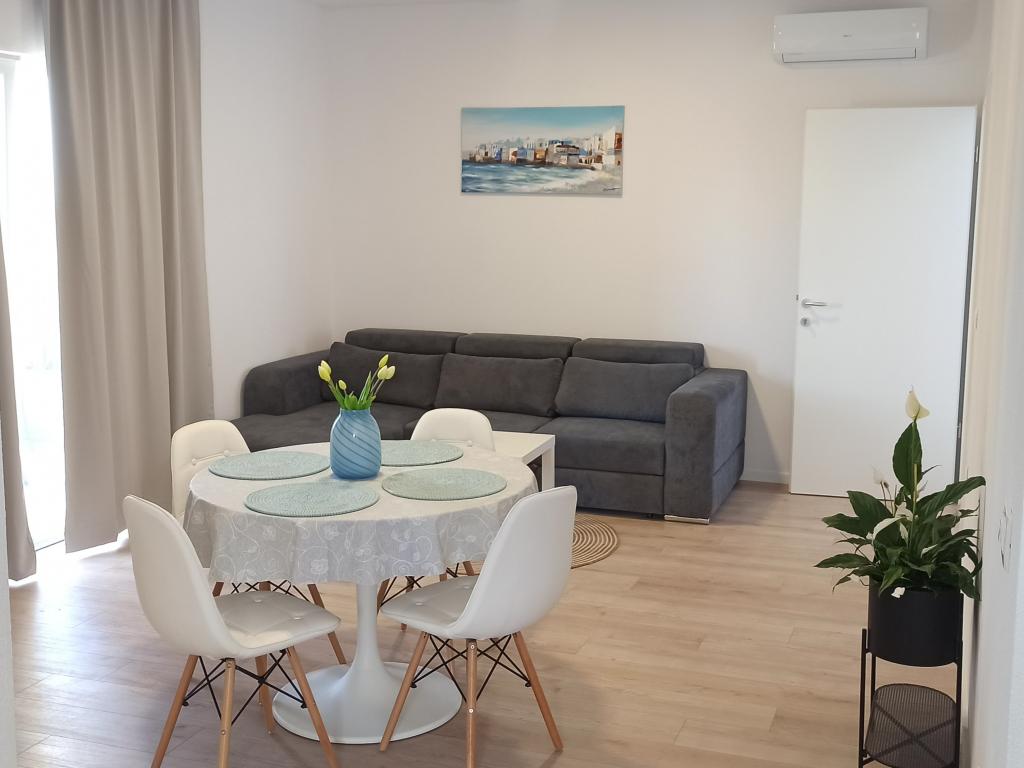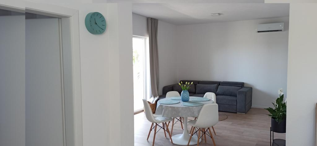 Kompletno i suvremeno opremljeni apartmani u mirnom predjelu, smješteni 100 m od mora; Objekt se nalazi 2 minute hoda do plaže te 10 minuta hoda do centra.