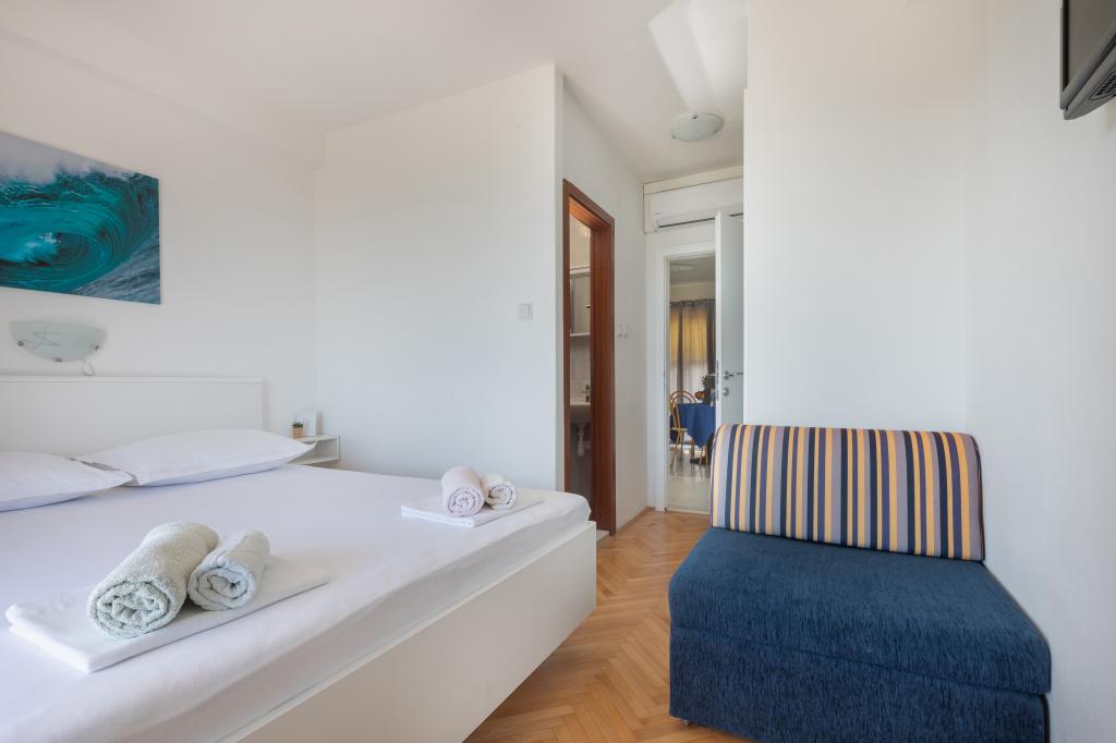 Turistička pristojba je uključena u cijenu.Sve pohvale, kako za domaćine tako i za smještaj. Ne tako daleko od mora, s lijepim pogledom na more. Sobe su dobro opremljene, kupatilo novo renovirano. Prostrana kuhinja, zajednička za sve sobe, odlično opremljena. Parking osiguran za automobile također. Sve preporuke.