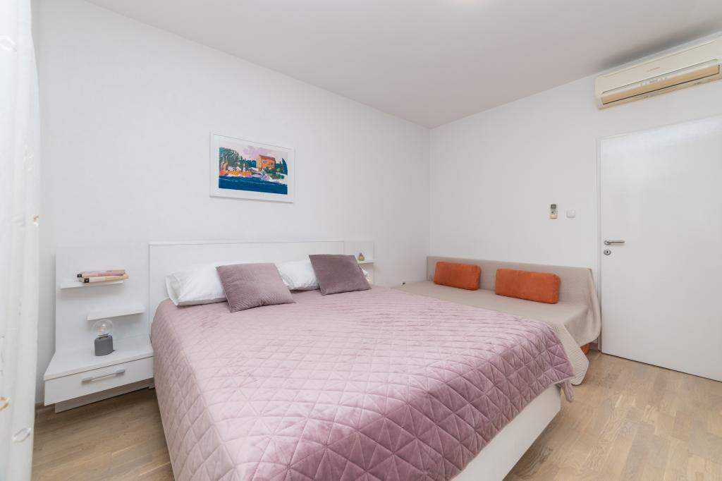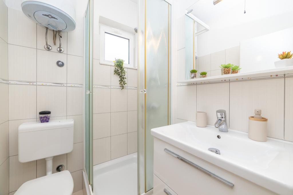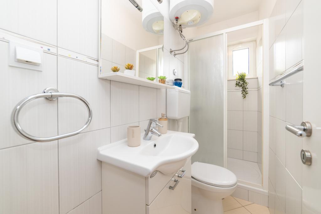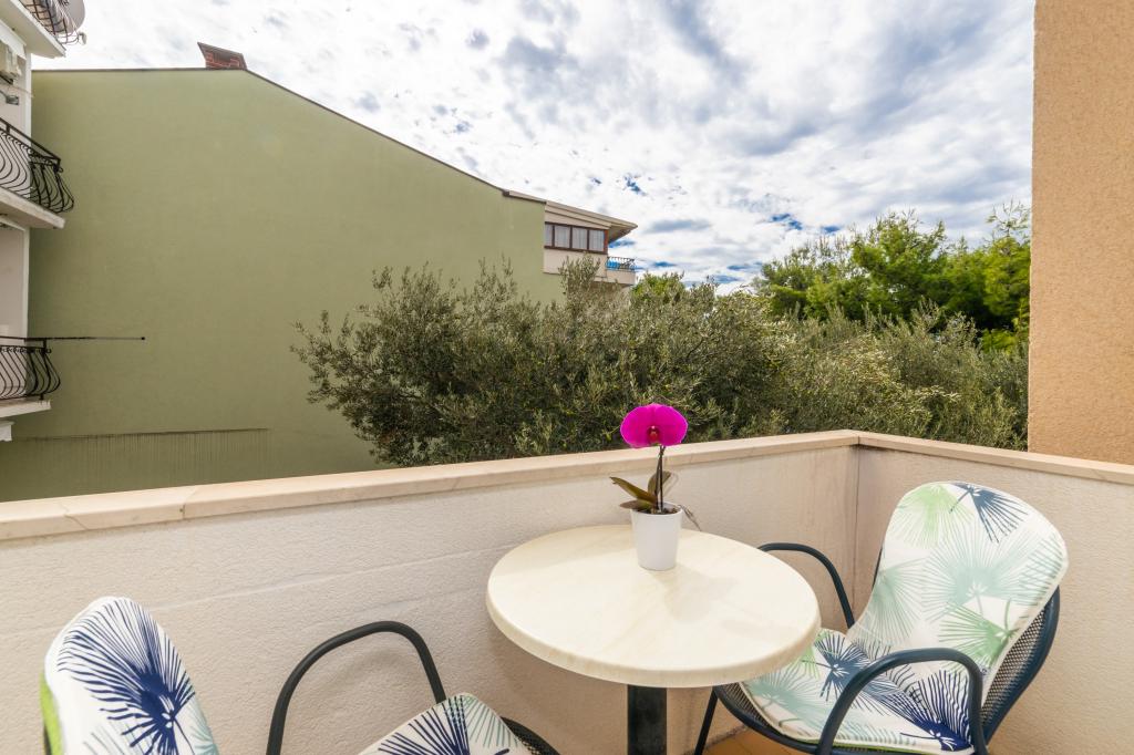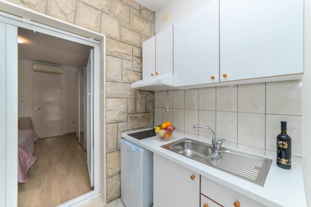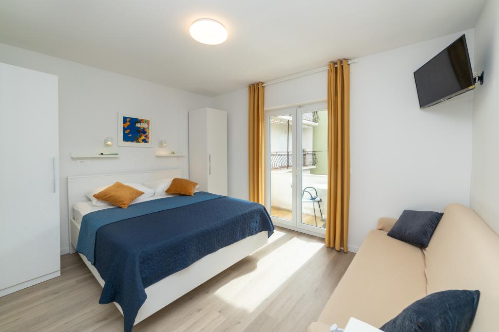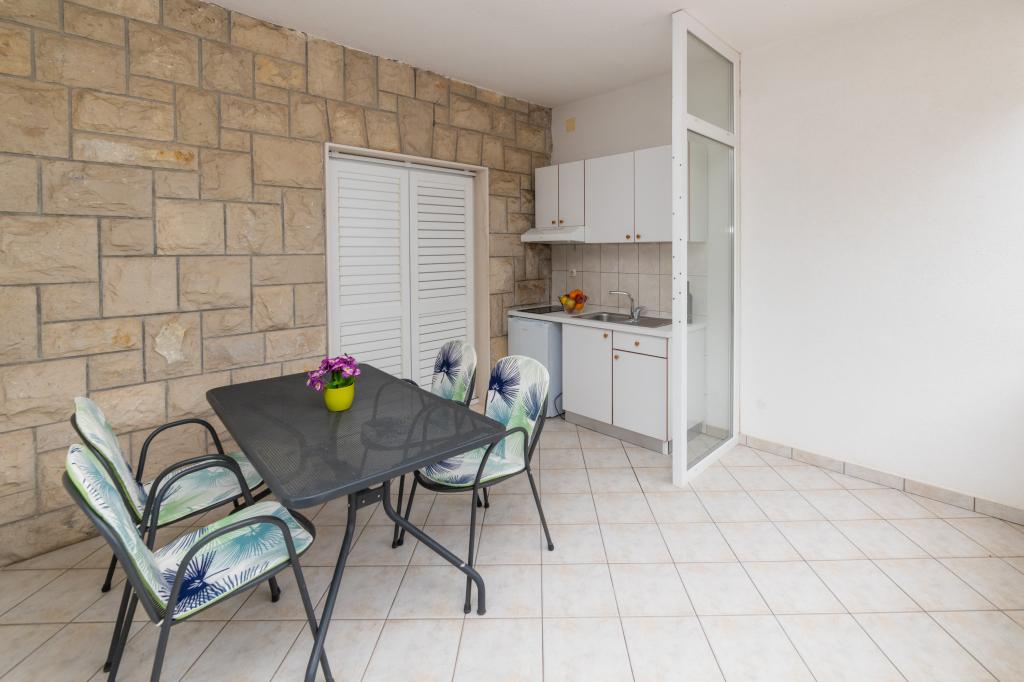Raspolažemo apartmanima u dva objekta. Nalazimo se 100 m od centra Tučepi, marine, ljekarne i doktora. U blizini od 20-50 m su brojni restorani, pekare, slastičarne, kafići i supermarket. Parking je u dvorištu između dva objekta. Kuća 1 je prvi red uz more i raspolaže sa dva apartmana 2+1 s pogledom na more i velikim terasama te sa dvije sobe s kupatilom, hladnjakom i balkonima za dvije osobe plus pomoćni ležaj. Nalaze se na prvome katu objekta. Sve sobe i apartmani su klimatizirani. Kuća 2 se nalazi iza kuće 1 i udaljena je 20 m od mora. Tu se nalaze veliki apartmani za 4-5 osoba koji imaju zasebne ulaze, dvije odvojene spavaće sobe, novouređeno kupatilo i dnevni boravak. Sve prostorije u apartmanima su klimatizirane i imaju satelitsku televiziju i internet. Ispred njih se nalazi velika terasa s pogledom na more. Apartmani su prostrani i veličine su 50-60m2.
