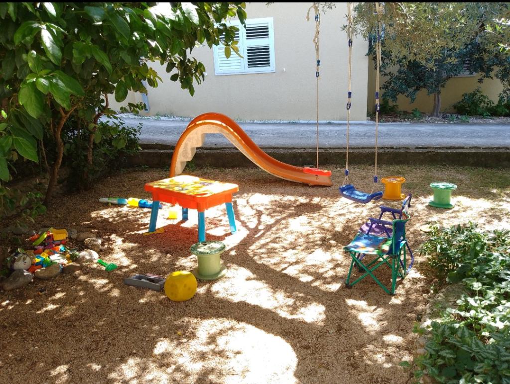 Villa Ševelj nalazi se 10 m od plaže, prvi red do mora.Mirna okućnica s maslenikom i parkingom, dječijim igralištem i stolovima u hladu.