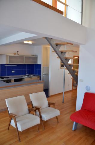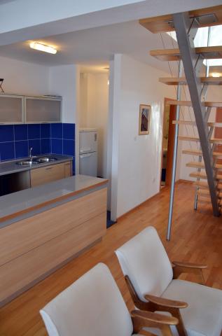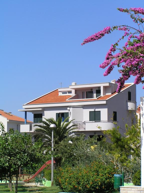 Suvremeno opremljeni apartmani u objektu smještenom u centru naselja, u mirnom predjelu u blizini mjesne marine, rive, plaže, hotela hotel Villa Marija i hotel Laurentum. Plaža je udaljena cca 100-150 m. Riva, obala, marina udaljeni su od objekta cca 100 m. U blizini objekta je dječje igralište. U blizini objekta su trgovine Konzum i Sudenac ( udaljene cca 100-150 m ).