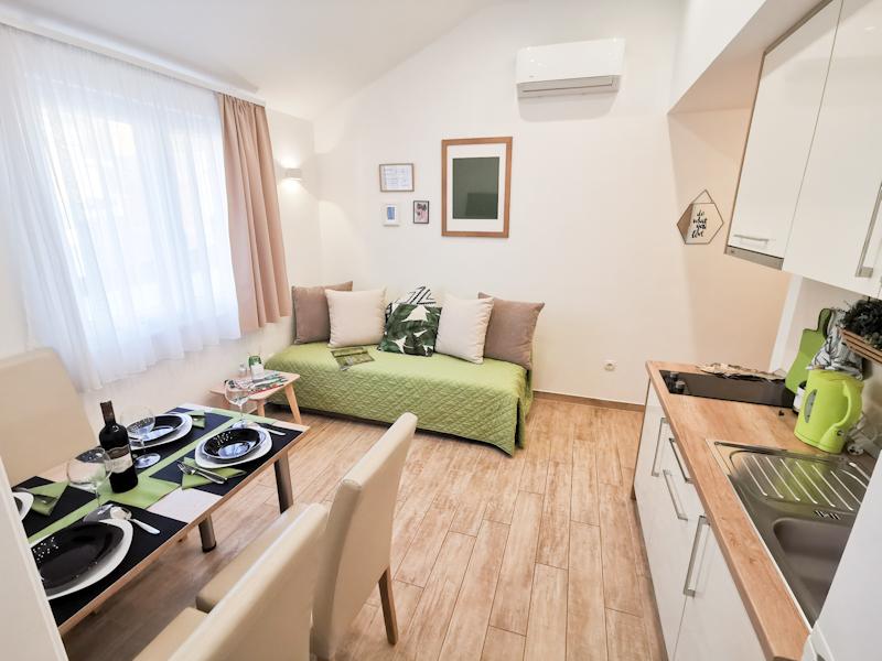 Ostali smo 2 tjedna. Stan je bio ekstra čist, lijep novi balkon s pogledom na lijepi vrt. Tiho, ali i vrlo blizu plaže i centra. Mi ćemo se svakako opet vratiti!