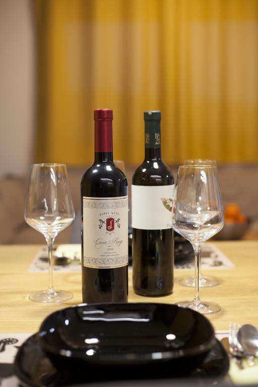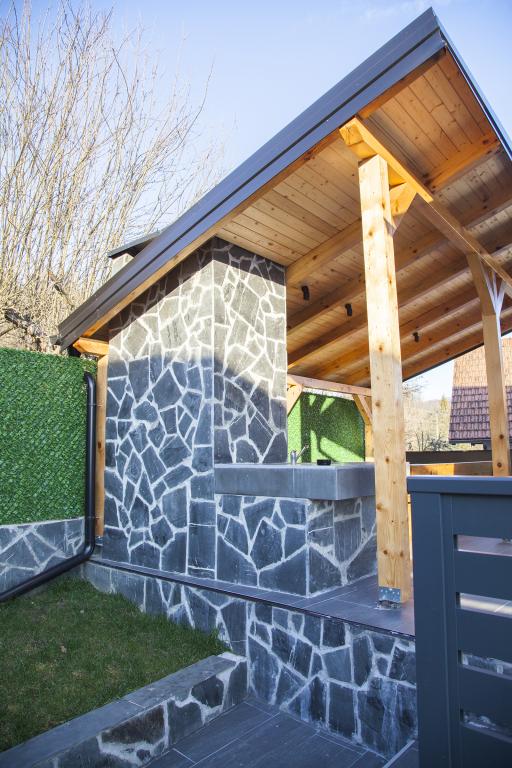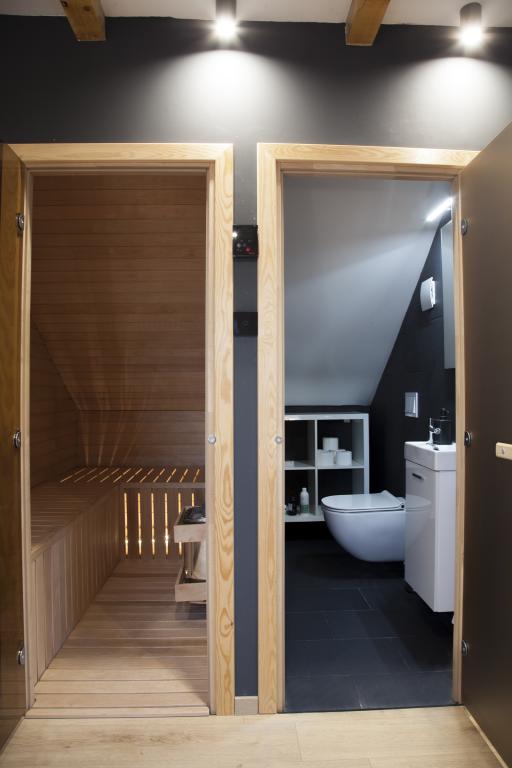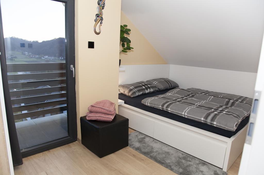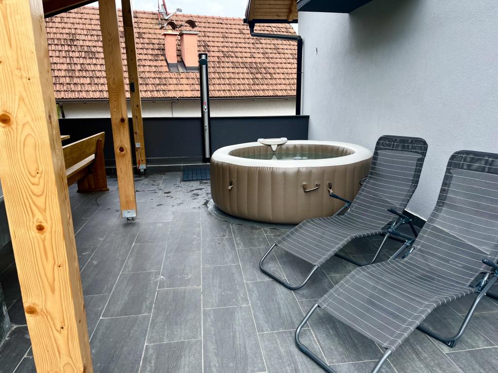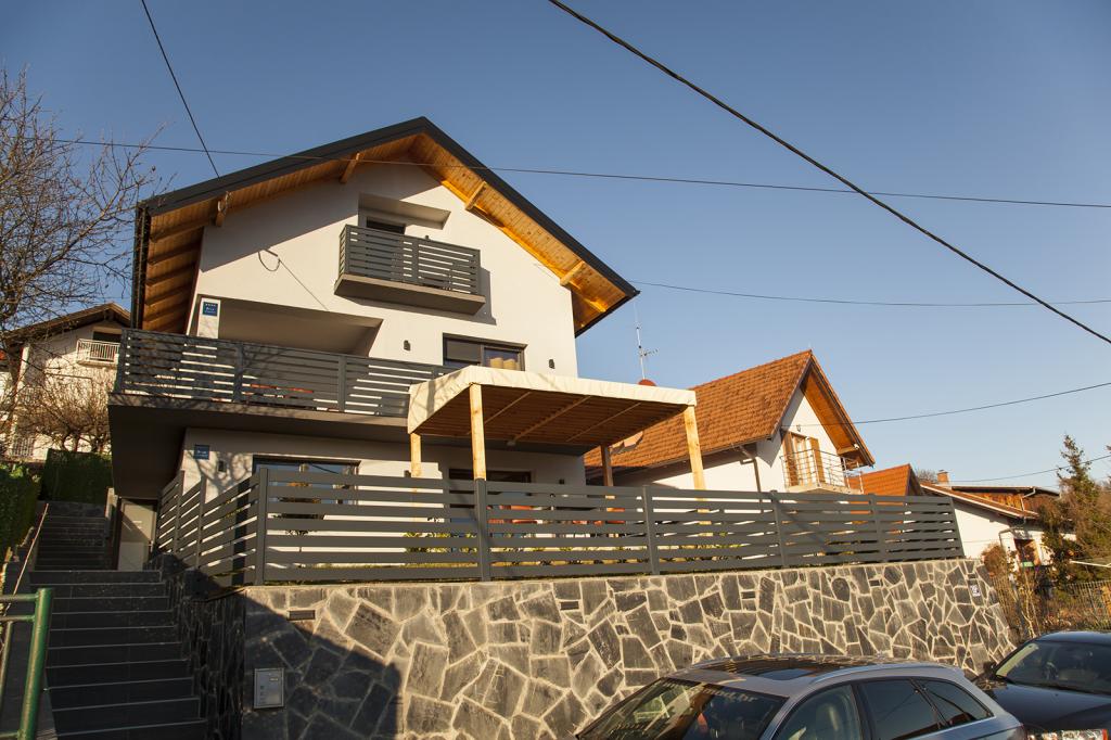 Okružite se stilom u ovom izvanrednom prostoru. Ova moderna vila s 4 zvjezdice nalazi se na mirnom brežuljku iznad Termi Tuhelj i ima prekrasan pogled na okolicu. Apartman u prizemlju (38m2) ima sve što je potrebno za savršen odmor i više od toga. Potpuno opremljena kuhinja s pećnicom, perilicom posuđa i mikrovalnom sa svim dodacima. TV sa 100+ programa i Netflix. Vanjska terasa s drvenom pergolom, roštiljem i prekrasnim pogledom svaki put će Vas opustiti... Apartman na katu je dvoetažni (70m2) i u njemu se nalaze 3 spavaće sobe, veliki boravak sa potpuno opremljenom kuhinjom, sauna, kupaonica i WC. TV sa 100+ programa, Netflix, PS4 konzola, BT radio itd... Sa natkrivene terase se pruža prekrasan pogled na okolicu. Pristup za goste Našim gostima je na raspolaganju privatni parking i garaža, praonica rublja, vanjska terasa s roštiljem i sudoperom, hidromasažna kada (svibanj-listopad), vrtni tuš, sauna i još mnogo toga…