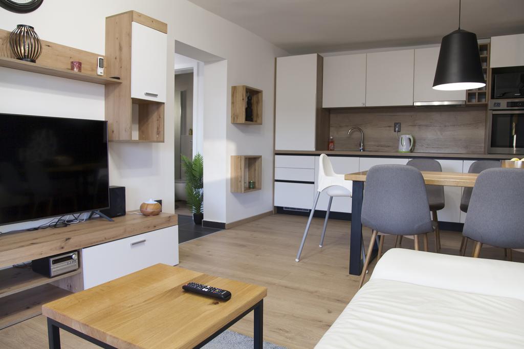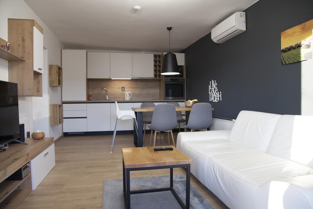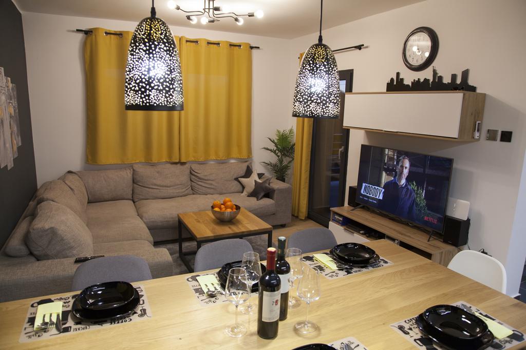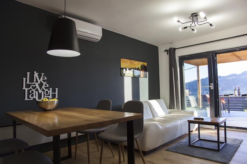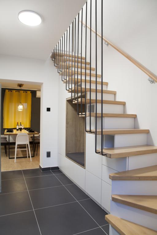 Okružite se stilom u ovom izvanrednom prostoru. Ova moderna vila s 4 zvjezdice nalazi se na mirnom brežuljku iznad Termi Tuhelj i ima prekrasan pogled na okolicu. Apartman u prizemlju (38m2) ima sve što je potrebno za savršen odmor i više od toga. Potpuno opremljena kuhinja s pećnicom, perilicom posuđa i mikrovalnom sa svim dodacima. TV sa 100+ programa i Netflix. Vanjska terasa s drvenom pergolom, roštiljem i prekrasnim pogledom svaki put će Vas opustiti... Apartman na katu je dvoetažni (70m2) i u njemu se nalaze 3 spavaće sobe, veliki boravak sa potpuno opremljenom kuhinjom, sauna, kupaonica i WC. TV sa 100+ programa, Netflix, PS4 konzola, BT radio itd... Sa natkrivene terase se pruža prekrasan pogled na okolicu. Pristup za goste Našim gostima je na raspolaganju privatni parking i garaža, praonica rublja, vanjska terasa s roštiljem i sudoperom, hidromasažna kada (svibanj-listopad), vrtni tuš, sauna i još mnogo toga…