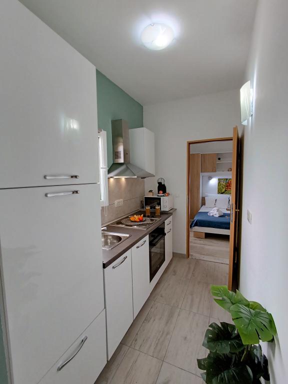 Što nudimo uz smještaj: Besplatan optički internet (WiFi) – uživajte u brzoj i pouzdanoj vezi tijekom cijelog boravka. Max TV – bogat izbor kanala za opuštanje nakon dana na plaži. Dobrodošlica – set domaćih slanih inćuna kao autentičan mediteranski poklon. Osnovne potrepštine – čisti ručnici, toaletni papir, deterdžent za suđe i tekući sapun za vaš komfor. Besplatan parking – osigurano parkirno mjesto za vaš automobil. Dvorište s roštiljem i velikom ljuljačkom – idealno za opuštanje i druženje na otvorenom. Kava za aparat – nekoliko kapsula ili vrećica kave za užitak odmah po dolasku. Perilica rublja dostupna na upit – praktična opcija za dulji boravak.