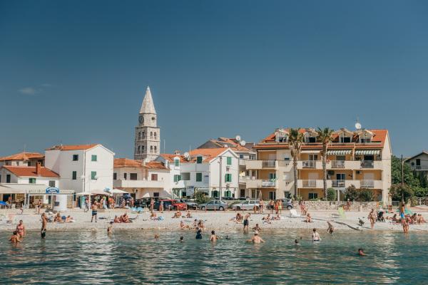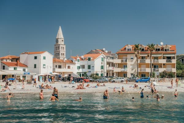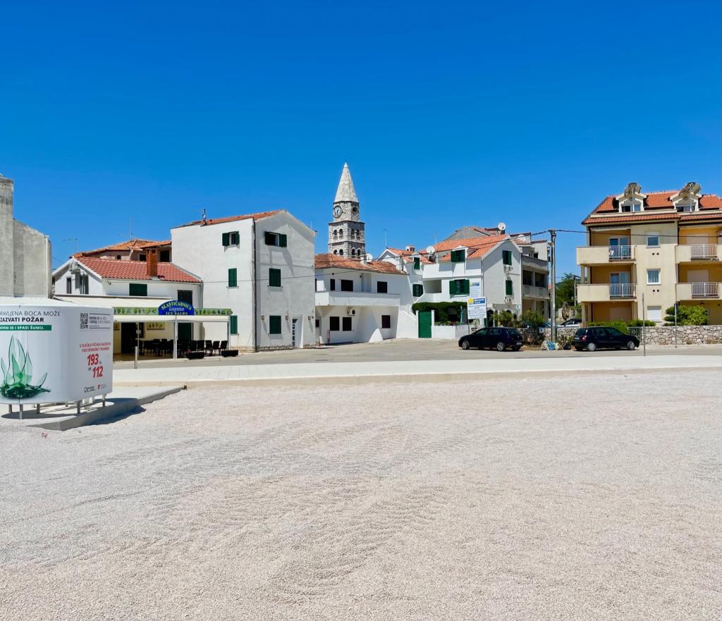 Smještaj kao na slikama, sve je u redu. Vlasnik kuće je super draga osoba. Govori engleski, slovački, češki, hrvatski. Parking ispred kuće, slastičarnica odmah ispod kuće, pizzeria odmah pored, 2 trgovine unutar 3 minute hoda. Plaža je odlična, odmah u vodi imate veliki dvorac na napuhavanje. Jednostavno odlično.