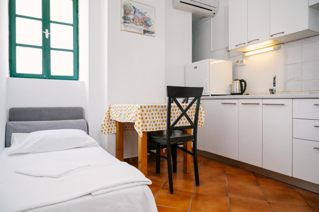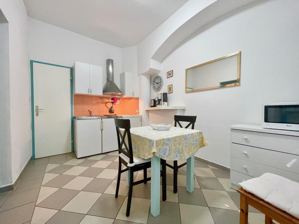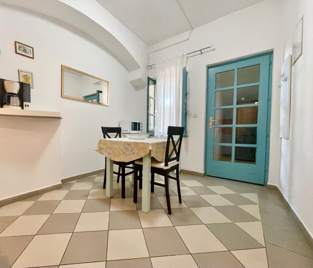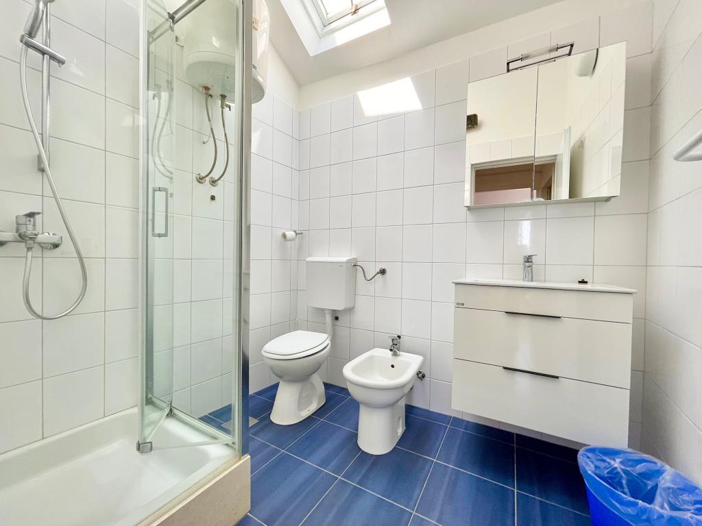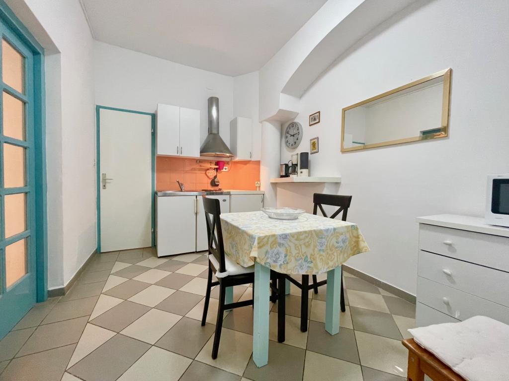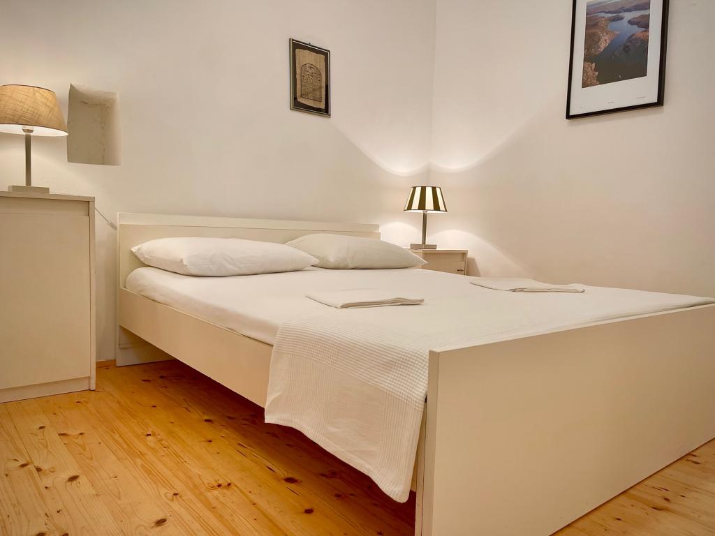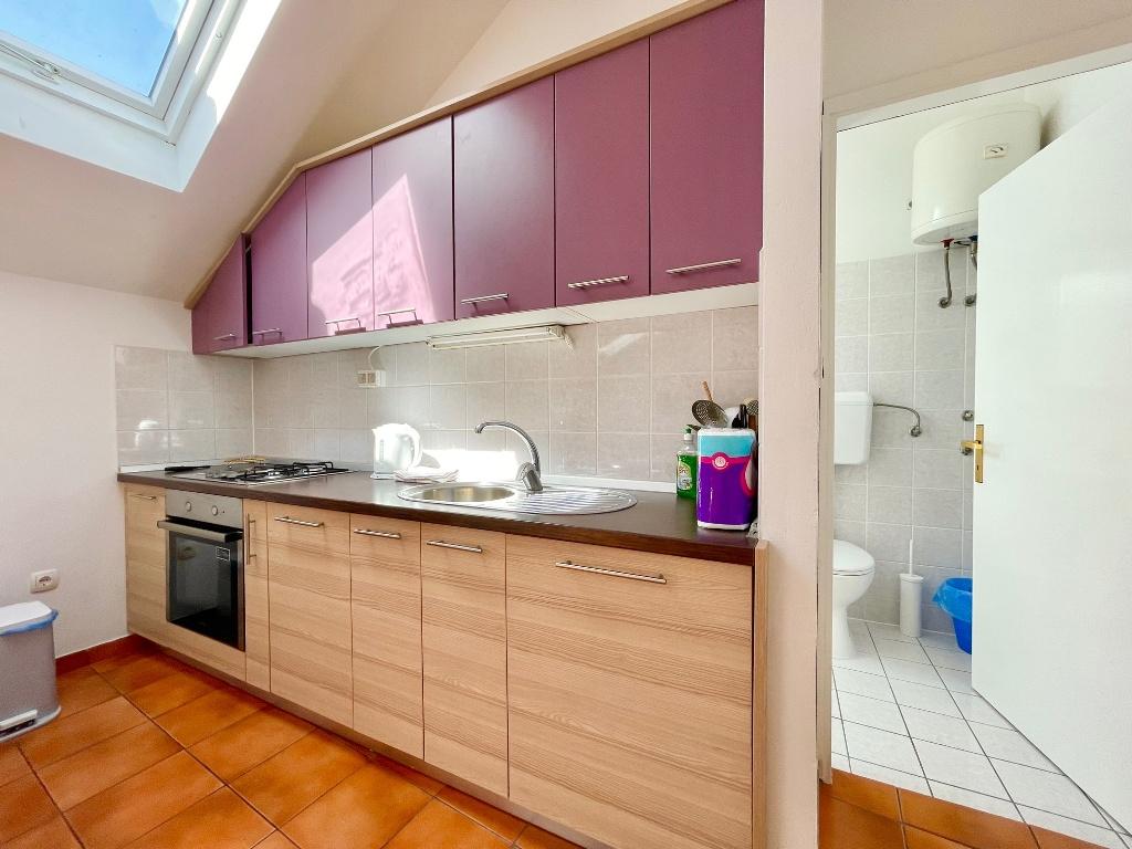 Suvremeno opremljeni apartmani nalaze se na prvome katu i drugome katu (potkrovlje) u kući u centru, na prvoj crti do plaže, s pogledom na more. Apartmani se sastoji od dnevnoga boravka s kuhinjom i kutom za blagovanje u jednome, jedan apartman s balkonom i s pogledom na more, jedne bračne sobe, kupaonice s tušem/WC. Parking na javnome prostoru ispred kuće. - Doplata za kućne ljubimce E5, 00 na dan.