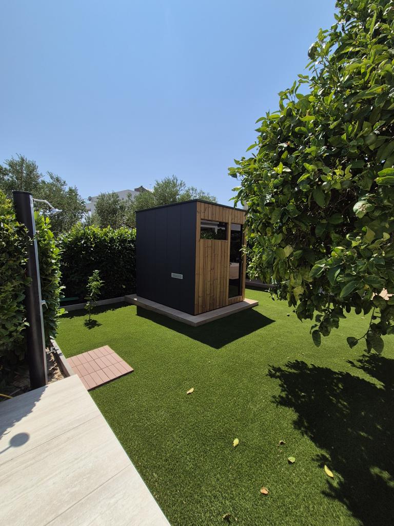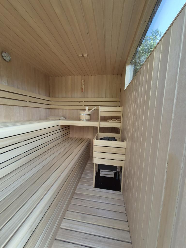 Također možete uživati u svom obiteljskom boravku na sunčanoj terasi koja je veličine 150 m2 i finskoj sauni.