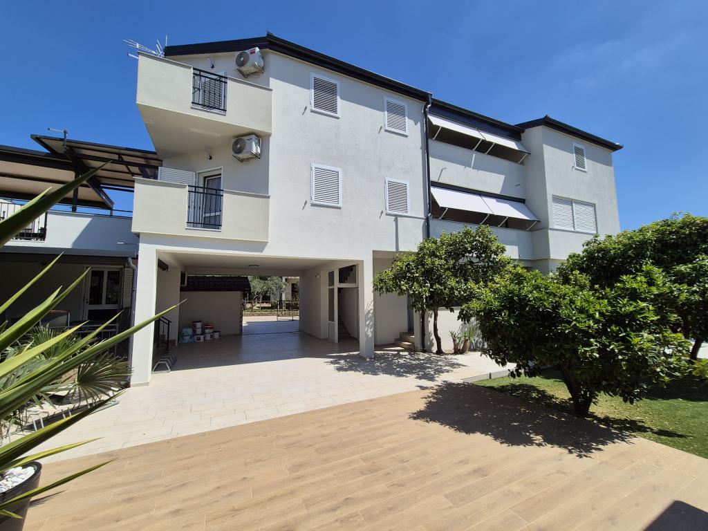 Apartmani se nalaze 90 metara od mora, a u neposrednoj blizini su svi važniji sadržaji: restorani, trgovine, teniski tereni i sve ono što će učiniti vaš boravak ugodnijim. Ako dolazite brodom iz neke druge zemlje međunarodna trajektna luka udaljena je svega 25 km od našeg mjesta. Ako dolazite avionom onda je lako doći do naše kuće, jer je udaljenost svega 20 km. Ako se vozite automobilom naši apartmani se nalaze samo 15 km od autoceste. Nudimo 5 apartmana i parking prostor za Vaš automobil. Svi apartmani imaju: kuhinju, dnevni boravak, kupaonicu s tuš kabinom, klima uređaj, TV, balkon i parkirno mjesto koje je besplatno za sve naše goste i nije potrebna rezervacija.