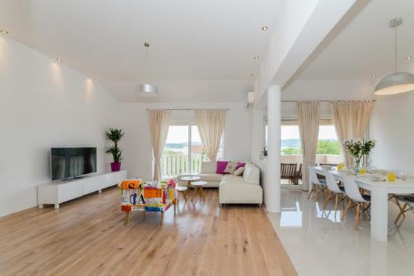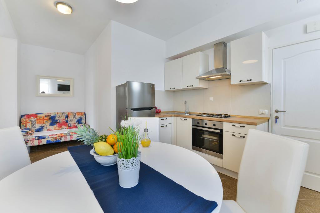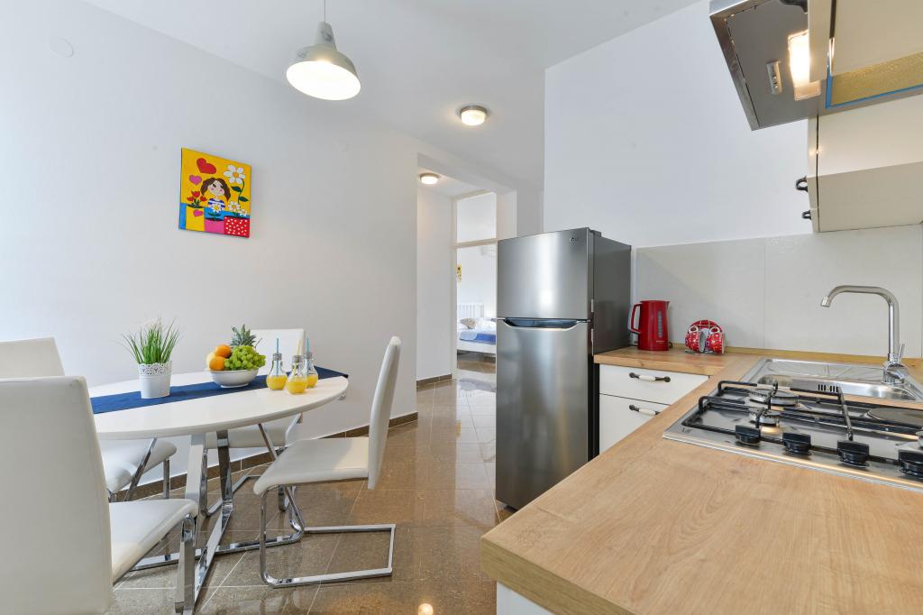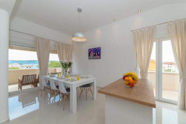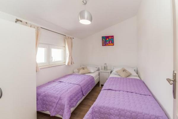Tri nova, moderno uređena apartmana kapaciteta do 6 osoba. Apartmani se sastoje od dvije ili tri spavaće sobe, kupaonica sa tuš kabinama, kompletno opremljenim kuhinjama, blagavaonicama te terasama od kojih A1 apartman ima pogled na more. Svi apartmani opremljeni su perilicama rublja, perilicama suđa ( u dva apartmana : A1, A3), Tv-om sa satelitskim kanalima, besplatnim Wi-fiem te imaju osiguran parking neposredno uz sam objekt. Apartmani Kampanel udaljeni su 200m od mora i centra mjesta.