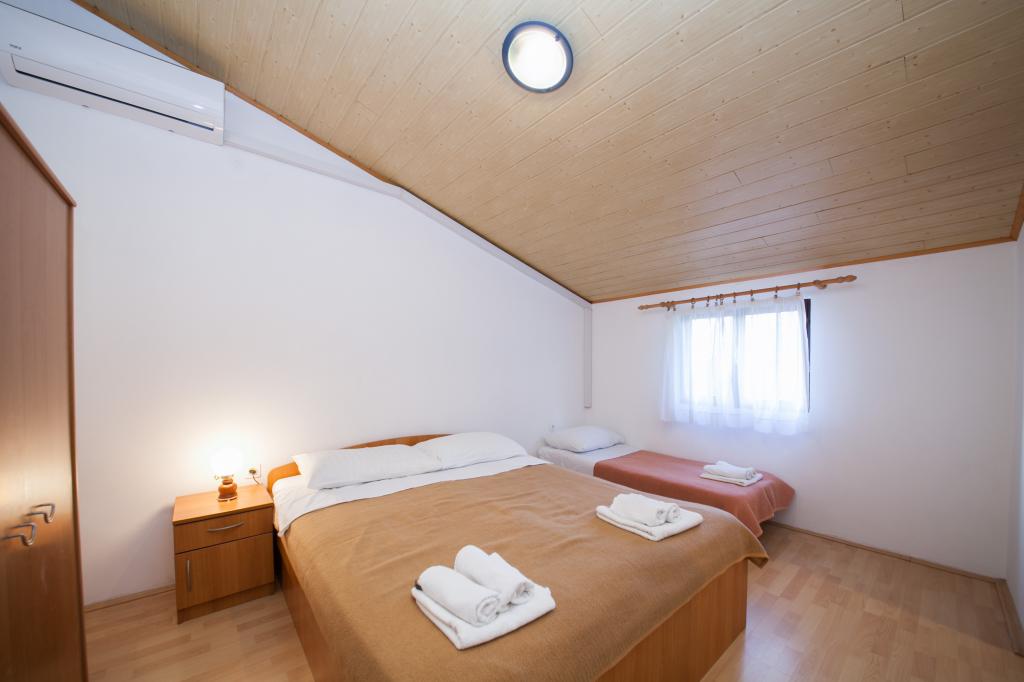 Apartman je jako lijepo uređen, čist, klimatiziran. Potpuno opremljen. Koristi se velika terasa sa pogledom na more. Lokacija je mirna, ali u isto vrijeme vrlo blizu mora i prekrasne plaže. Na plaži se nalazi igralište za odbojku i betonsko igralište za košarku i nogomet. Naravno, sve to nadopunjuju izuzetno ljubazni vlasnici, koji su uvijek dostupni, gostoljubivi i uvijek dostupni. Vraćamo se već nekoliko godina i imamo odličan odmor.