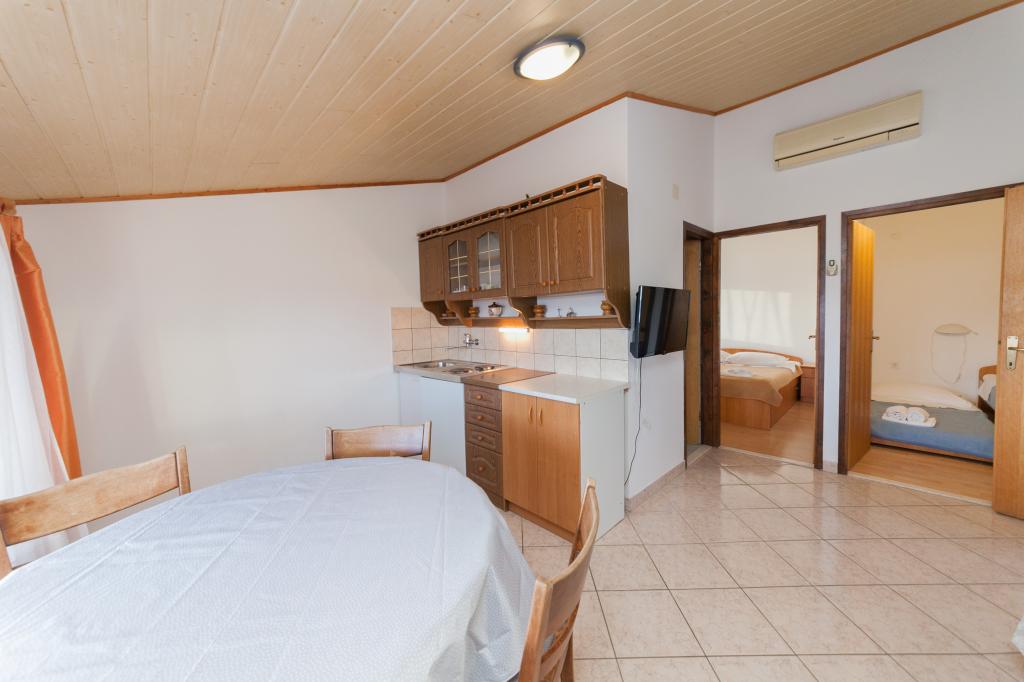 Apartman je čist i potpuno opremljen, jako zgodno za boravak s djecom. Ograđena terasa, blizina plaže i dućana, parking. Posebne pohvale domaćinima, jako su pristupačni i ljubazni, bilo nam je jako lijepo.