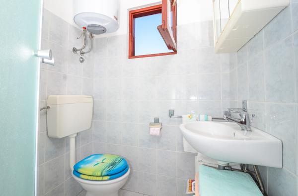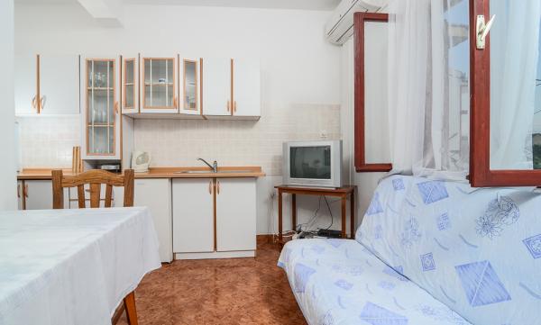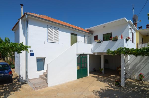 Tradicionalna kuća, ispod jadranske ceste (magistrale), u mirnom dijelu mjesta s dvorištem (parking) i vrtom, na 3 minute od plaže i 4 minute od centra mjesta. Potpuno opremljeni apartmani nalaze se na 1. katu a imaju svaki po mali balkon. Plaže se nalaze na otprilike 200 do 400 m udaljenosti.