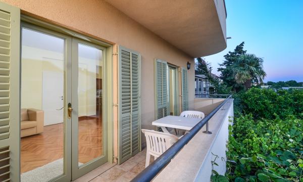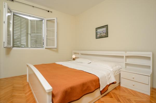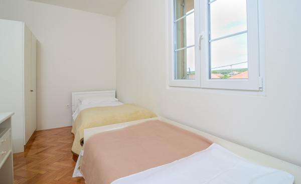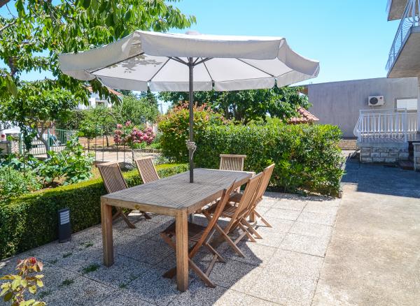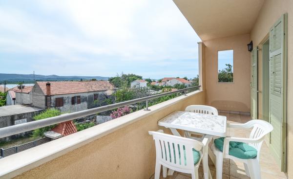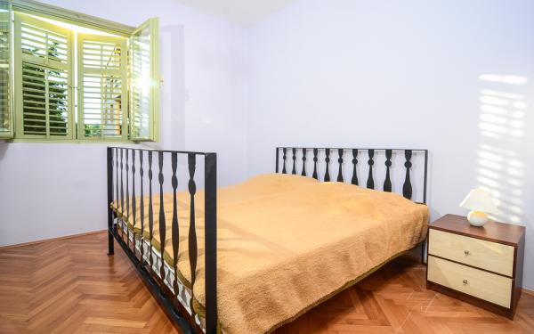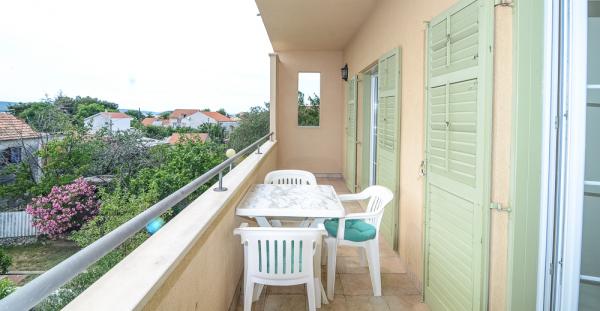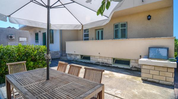 Potpuno obnovljena kuća s dva velika apartmana za po 6 osoba: dvosobni apartman A4 2 se nalazi na 1. katu a trosobni apartman A6 se nalazi na 2. katu. Na podu dnevnoga boravka i spavaćih soba je parket. Apartmani su svježe obojani a namještaj i oprema su suvremeni. Okućnica se sastoji od dva dijela: prednji, ulazni dio s parkom i grillom i stražnji dio s vrtom, parkingom i kompletom sa stolom i stolicama za barbecue i predah. Okućnica je noću ukrašena diskretnim osvjetljenjem. Kuća je udaljena oko 100 m od restauranta, samoposluga i mora. Udaljenost od prve plaže 150 m, a od centra 400 m. Ljetovališta u blizini: Sv. Filip i Jakov 1 km, Biograd 5 km, Zadar 20 km
