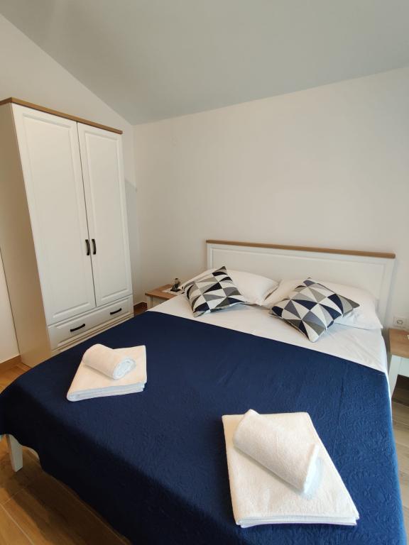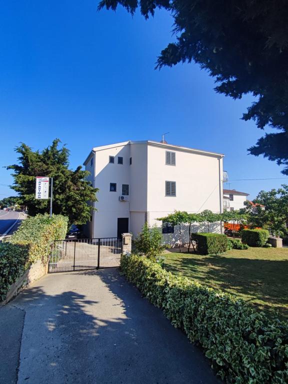 Moderni apartmani nalaze se u obiteljskoj kuci na tri etaže sa pogledom na more i Pašmanski kanal. U dvorištu kuće su osigurana parking mjesta ,a ima prostora i za brodice za suhi vez pošto je vez na moru također osiguran. Prostrani apartmani sa svojim balkonima i terasama omogućavaju ugodnu opuštajuću atmosferu sa pogledom na more.