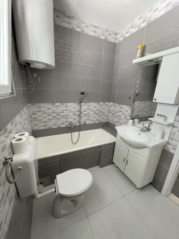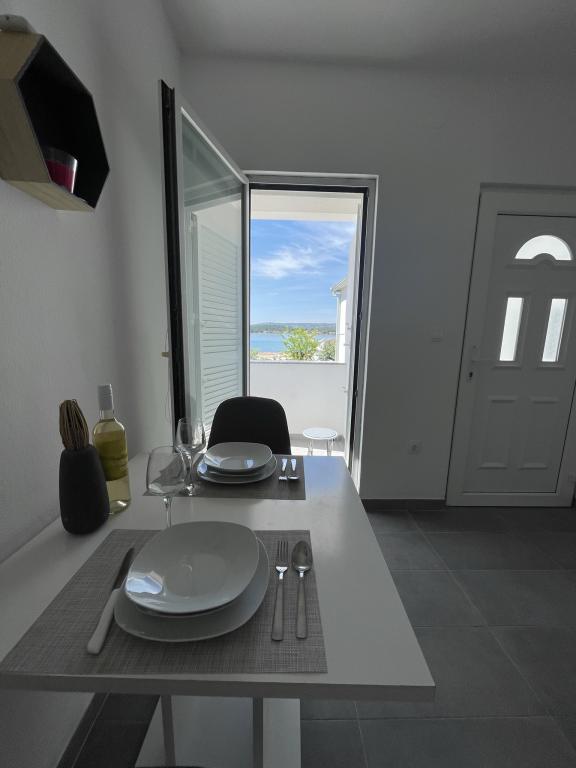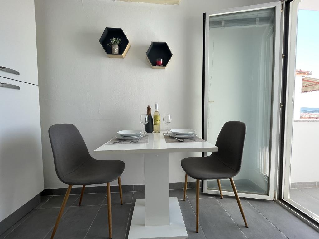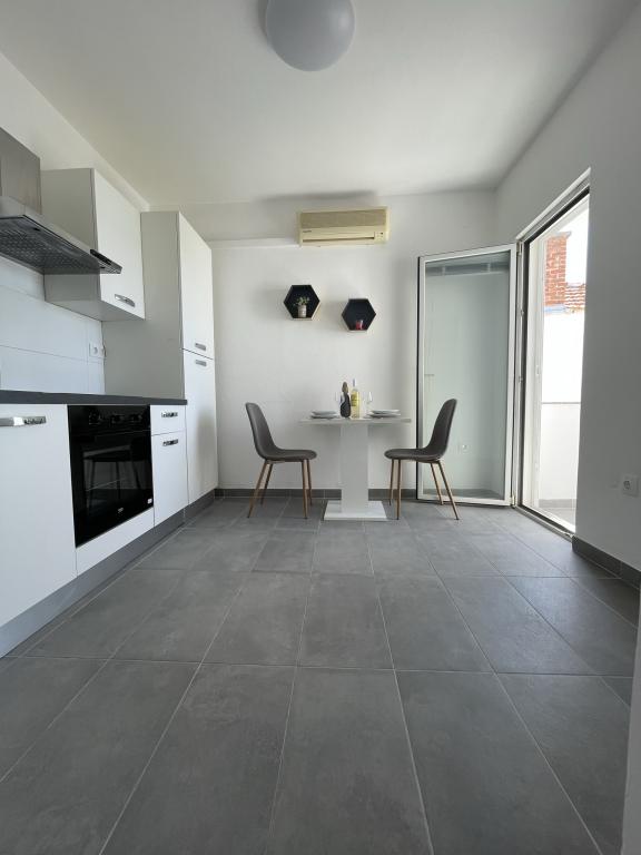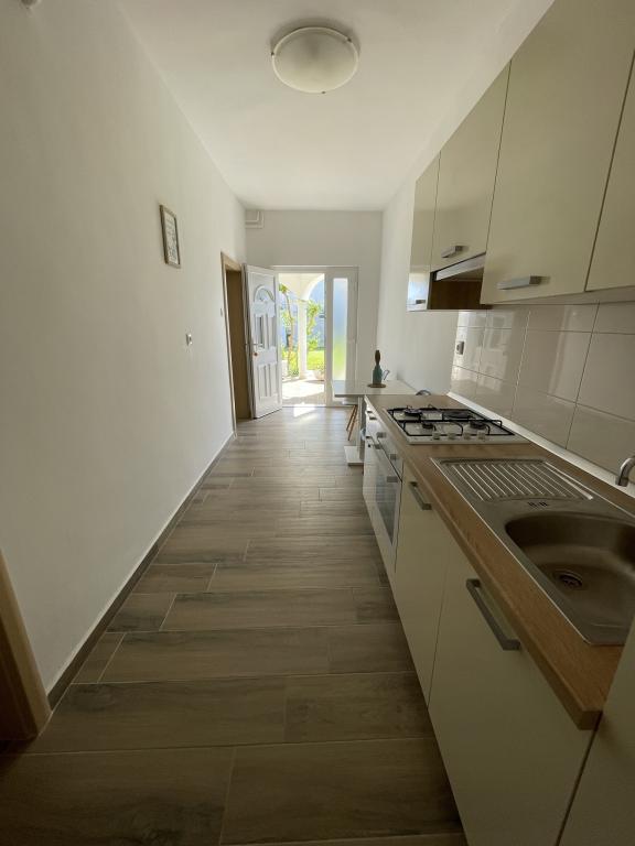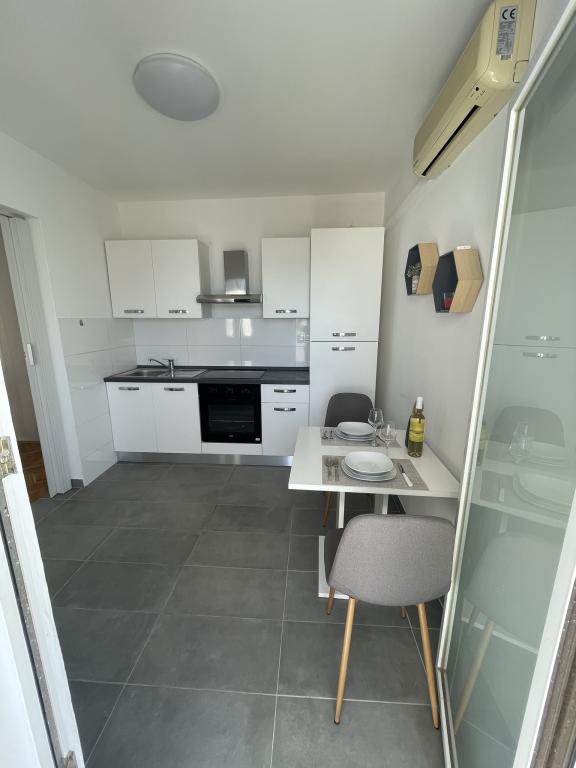 Kompletno i moderno opremljen apartman, velika terasa i pogled na more. Prvi red do mora. U blizini prodavaonica mješovite robe, centar, plaža, restoran, pizzeria.