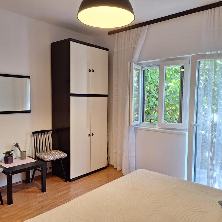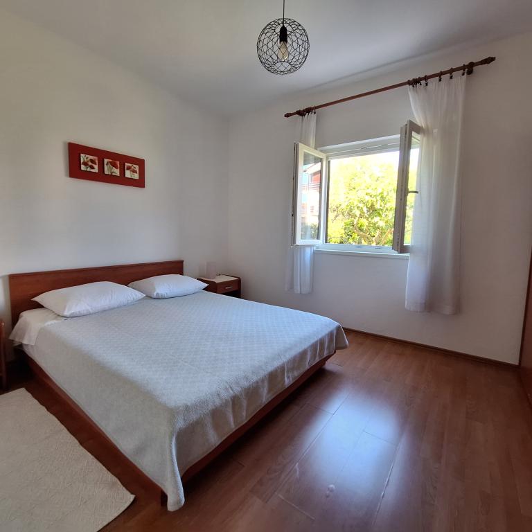 Nudimo vam najam cijele kuće površine 100 m² s vlastitim dvorištem od 600 m² – idealno mjesto za opušteni i mirni odmor! Prednosti: potpuna privatnost , samo 2 minute pješke do plaže , prostrano dvorište puno hladovine i zelenila , uživajte na terasi ili u dvorištu uz roštilj, osiguran parking za vaš automobil. Ovdje ćete pronaći savršen kutak za relaksaciju i uživanje u prirodi, daleko od gradske buke. Kuća se sastoji od 2 spavaće sobe, velikog dnevnog boravka, kuhinje s blagovaonom i kupaonice . Udaljenosti : Zadar - 23 km Biograd - 4 km Šibenik - 50 km Blizina Nacionalnih parkova : Krka, Kornati, Paklenica.