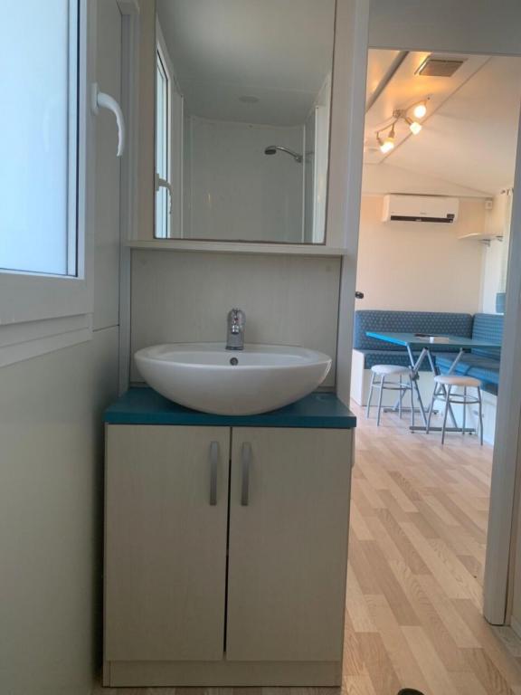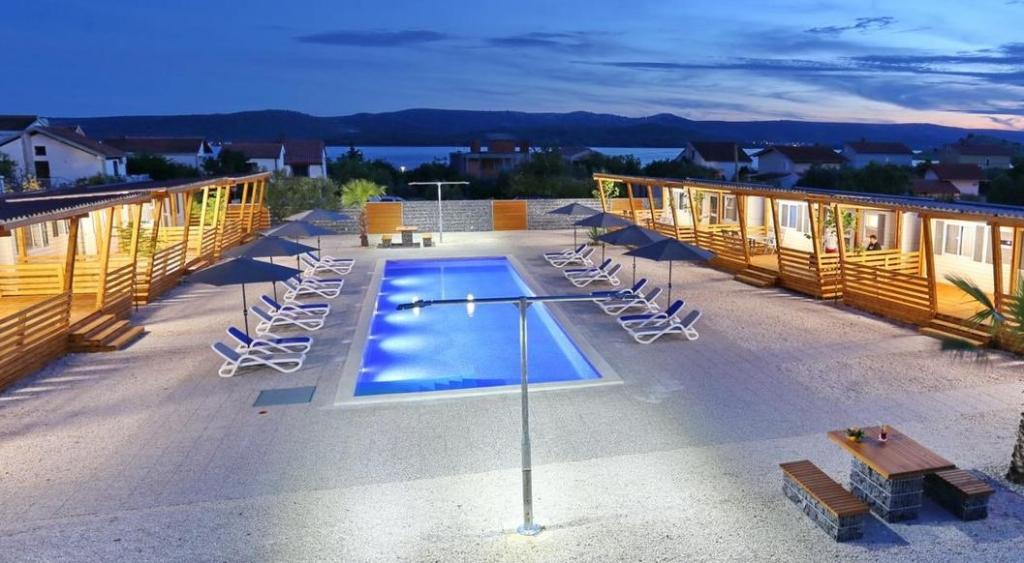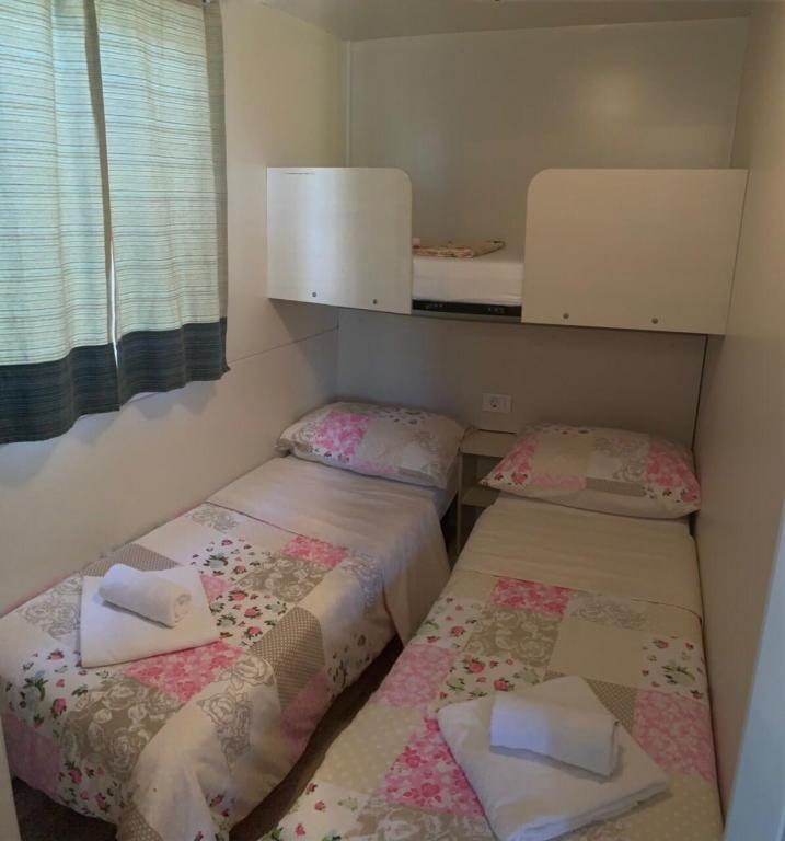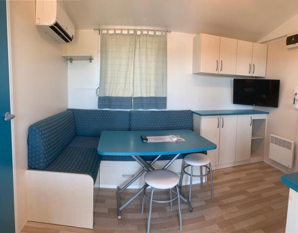 Mobile Homes Dalmacija Turanj Roberts & Helens se nalazi u Turanju, na 150 metara od plaže Krča i 1, 5 km od plaže Turanj, a nudi besplatni WiFi, klima uređaj i sezonski vanjski bazen. Također obuhvaća privatni bazen, opremu za roštilj i besplatno privatno parkiralište. Mobilna kučica ima: Spavaća soba 1: 1 bračni krevet Spavaća soba 2: 2 kreveta za jednu osobu i 1 krevet na kat Dnevna soba: 1 kauč na razvlačenje 1 kupaonicu 1 WC flat-screen TV sa satelitskim programima, potpuno opremljenu kuhinju i terasu s pogledom na bazen. Djeca svih dobnih skupina su dobrodošla. Djeca starija od 18 godina smatraju se odraslima u ovom smještaju. Ako želite istražiti okolicu, možete krenuti na biciklističko putovanje. Plaža Morovićka Turanj udaljena je 1, 7 km. Najbliža zračna luka je Zračna luka Zadar, 19 km od Mobile Homes Dalmatia Turanj Roberts & Helens. Naši gosti u komentarima kažu da im je ovo najdraži dioTuranja
