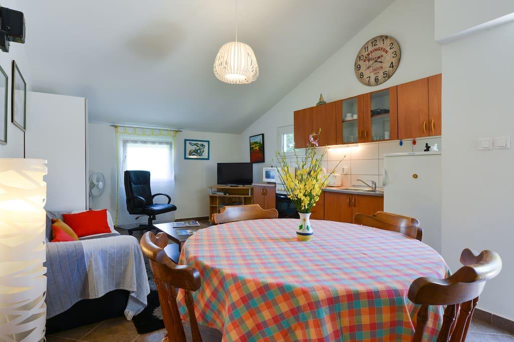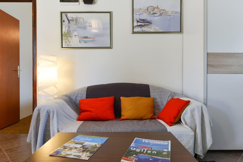 Vrlo lijepo uređen i čist apartman na mirnoj lokaciji, s parkingom u hladu ispred kuće. Vlasnici su vrlo ljubazni. U blizini se nalazi nekoliko plaža, a nama se najviše svidjela južna, gdje je umivaonik u vodi, a na plaži ima dosta hlada ispod borova. Sa sobom smo imali bicikle, tako da su nam sve plaže na sjevernom dijelu otoka bile dostupne za nekoliko minuta. U obližnjem Ugljanu nalazi se tržnica gdje možete kupiti svježu ribu i povrće, a tu je i nekoliko trgovina.