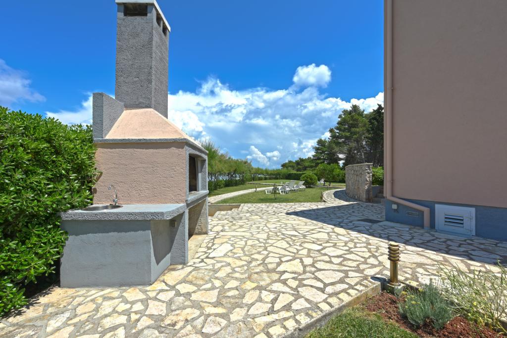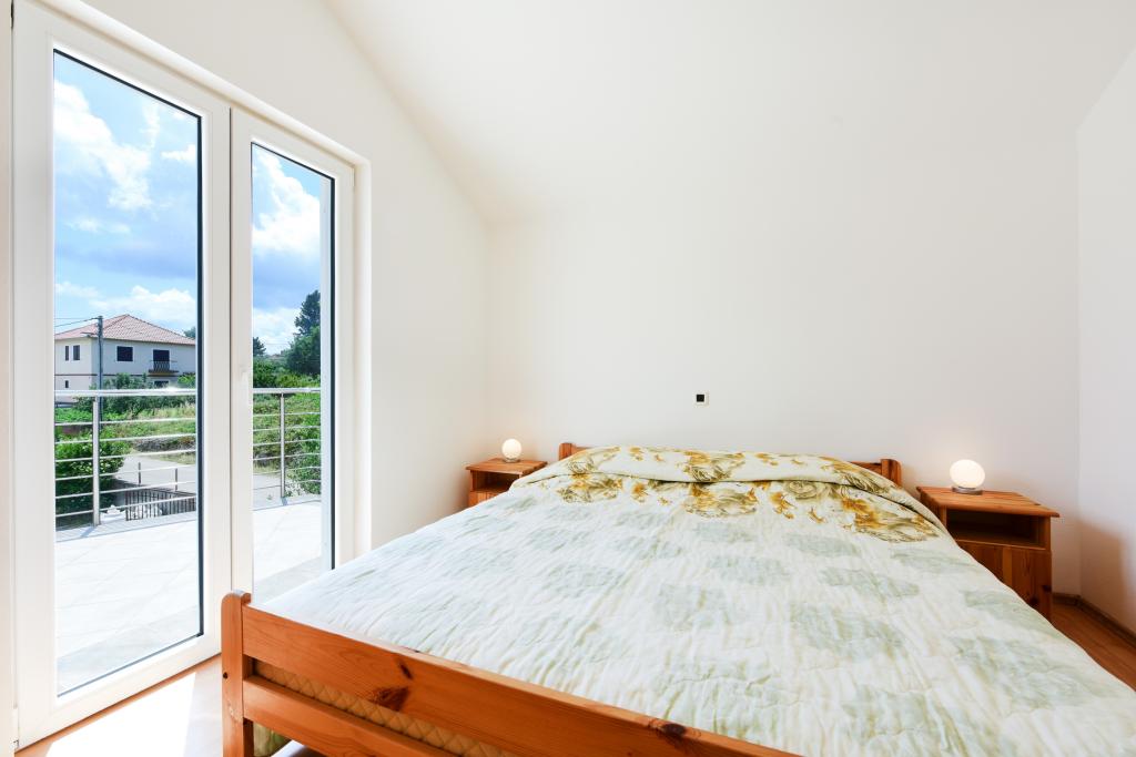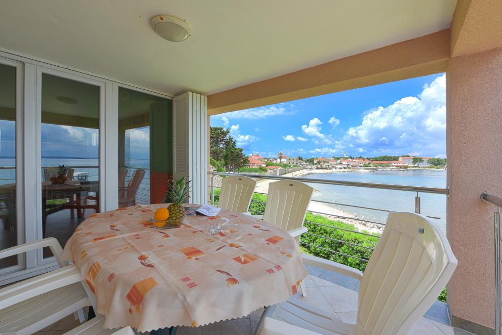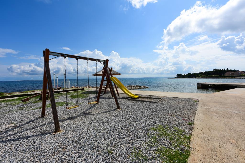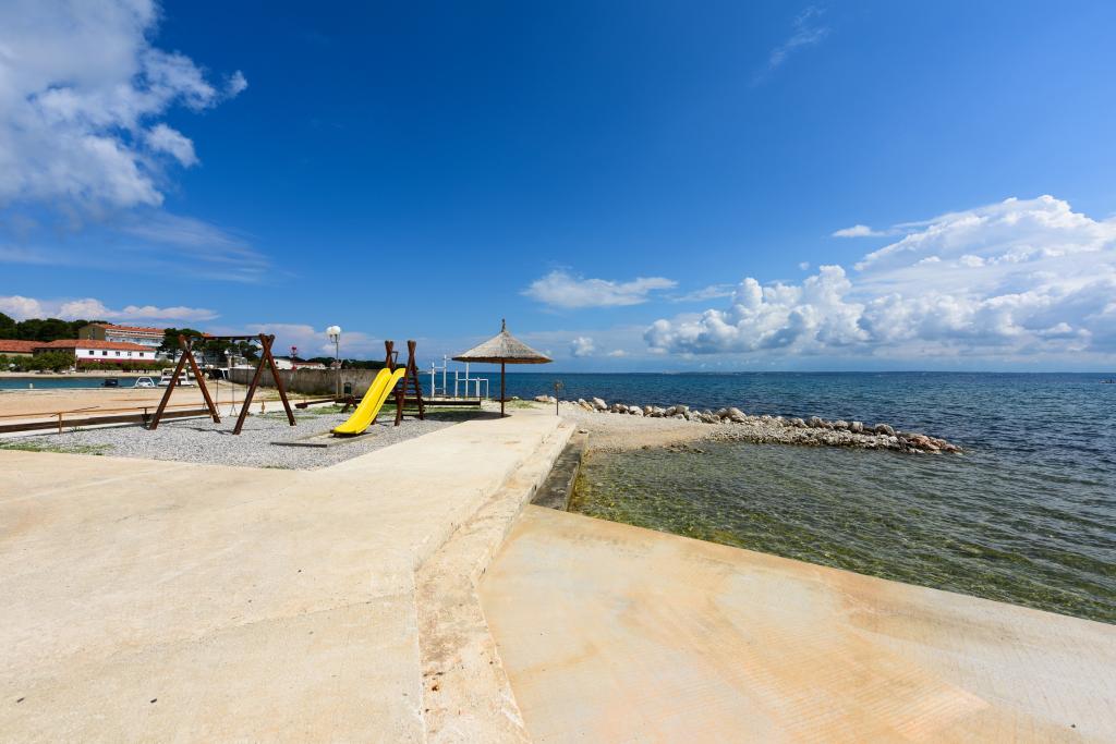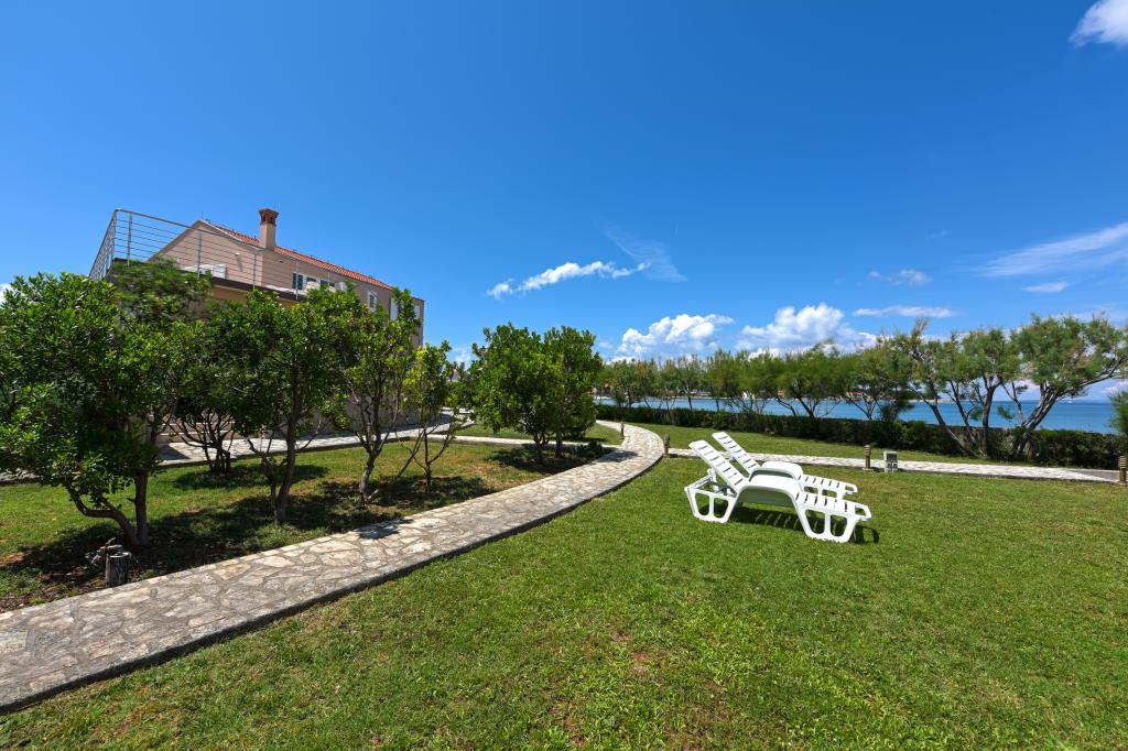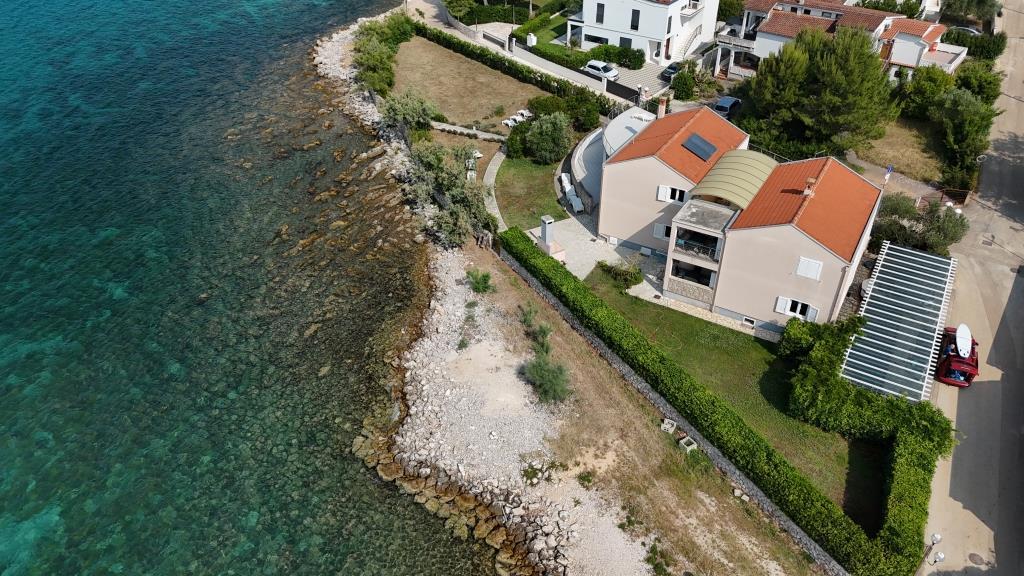 Apartmani se nalaze neposredno uz more u mirnom i prijateljskom seoskom okružju. Svaki apartman ima veliku terasu sa pogledom na more. Okružuje ih uređeni mediteranski vrt pogodan za igru djece. Na raspolaganju su ležaljke i zajednički roštilj u vrtu. Svaki apartman ima 2 kupatila. U blizini na 5 minuta hoda je centar gdje je tržnica sa proizvodima sa lokalnih farmi te trgovine i restorani. Hitna medicinska pomoć je pristupačna 24/7. Plaža neposredno ispred apartmana je šljunčana a ima više plaža na maloj udaljenosti gdje se nalazi i pješčana plaža. Dolazak automobilom: autoput vodi direktno u trajektnu luku Gaženica. Nakon toga slijedi ukrcaj na trajekt za Preko. Ljeti su linije učestale, prometuje najmanje svaki sat. Iz trajektne luke Preko se otočkom magistralom stiže u mjesto Ugljan koje je udaljeno 10 km. Dolazak avionom: Iz zračne luke Zadar autobusom ili taxijem za 15 min. se stiže direktno u trajektnu luku Gaženica gdje se ukrcava na trajekt za Preko .