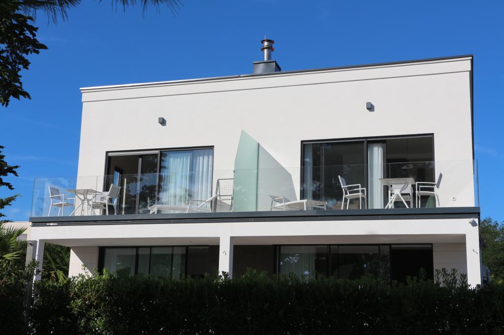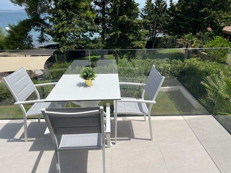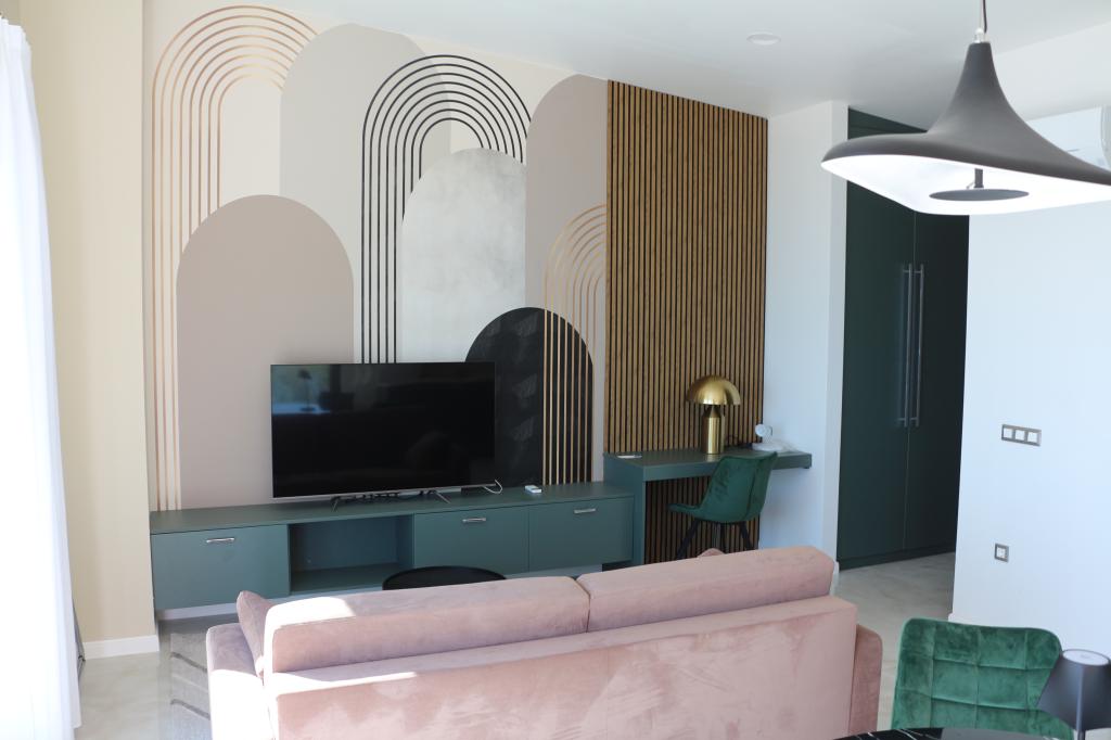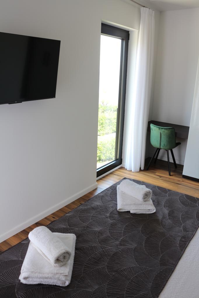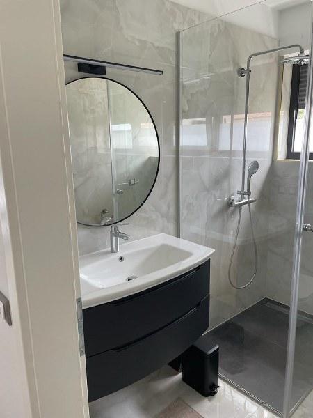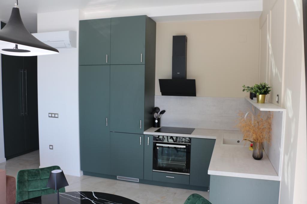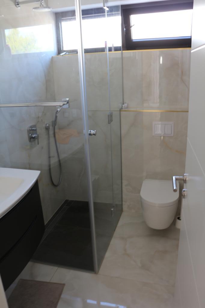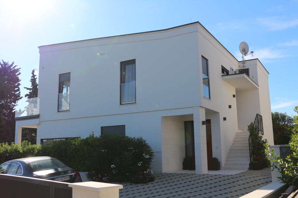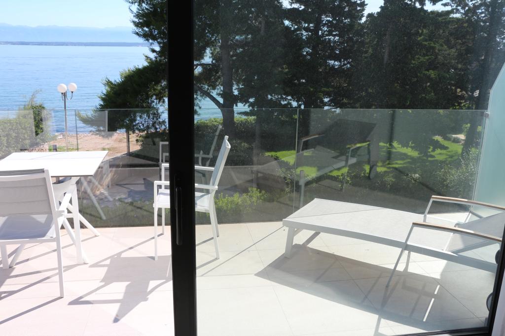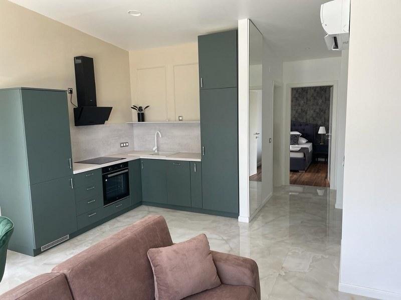Kompletno novi i moderno uređen apartman, prvi red do mora, 50m2 s prostranim balkonom za sunčanje i objedovanje. Osigurano parkirno mjesto unutar dvorišta objekta sa električnom pomičnom ogradom. Apartmani su dizajnerski uređeni sa internet TV-om 55" u dnevnom boravku i 43" u spavaćoj sobi, usluge streaminga (kao što je Netflix). Kuhinje opremljene frižiderom, ledenicom, indukcionom pločom za kuhanje i pećnicom, te perilicom za posuđe. Uključeni,fen, ručnici, posteljina, suđe, posuđe toalet papir. Blizina centra sa 3 trgovine prehrambenim proizvodima i 4 restorana u samom centru mjesta. Također u blizini nalaze se i dvije pizzerije. U blizini su dva beach bara, "Ritam" i "Bičikleta". U sezoni bar "Ritam" ima zanimljiv zabavni program sa glazbenim izvođačima.
