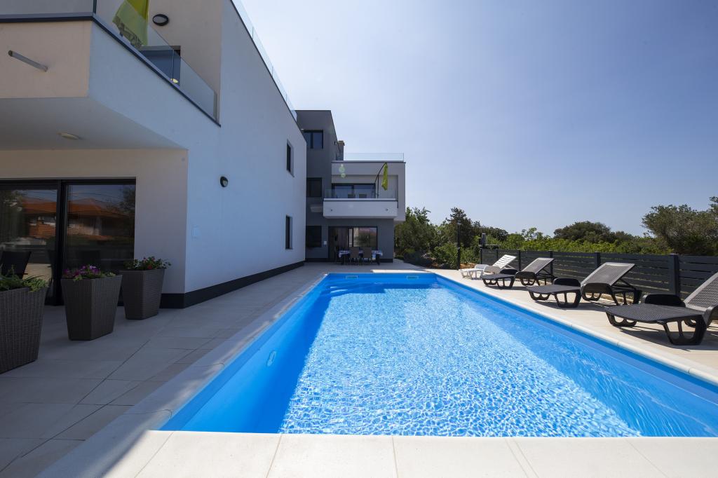 Novi, kompletno i moderno opremljeni apartmani s prekrasnim bazenom u blizinu plaža i centra mjesta. Smještaj je pogodan za obitelji s djecom. Otok je idealan za šetnju i vožnju biciklom.
