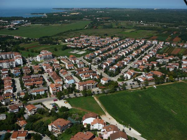 Umag, samo 15 minuta od granice sa Slovenijom. Prvo turističko mjesto u Hrvatskoj, na putu iz zapadne Europe. Apartman EMI nalazi se u novom naselju Komunela, na samom ulazu u Umag. Objekt se nalazi u prizemlju obiteljske kuće, okružen zelenilom, sa velikom terasom, na kojoj se može boraviti cijeloga dana. Namještaj u apartmanu je modernog tipa, i kuhinja sa blagovaonicom i soba su suvremeno opremljeni (štednjak plin/struja, veliki frižider s odjeljkom za duboko smrzavanje, mikrovalna pećnica, perilica posuđa). Dnevna soba je moderno namještena. Veliki kutni kauč, koji se po potrebi može pretvoriti u ležaj, regal sa led rasvjetom, veliki Smart Tv sa zemaljskim i satelitskim programima. Wi-fi router za pojačavanje signala za internet. Satelitski radio. Led rasvjeta. U istoj sobi je i klima uređaj. Cijena najma iznosi 5 €/dnevno. Na terasi se nalazi kutna klupa i stol za 6 osoba. Odmah uz apartman nalazi se pokriveno parkiralište. Parking i neograničeni internet su besplatn