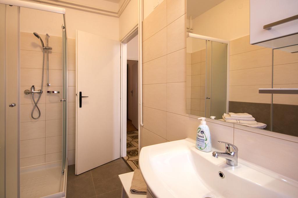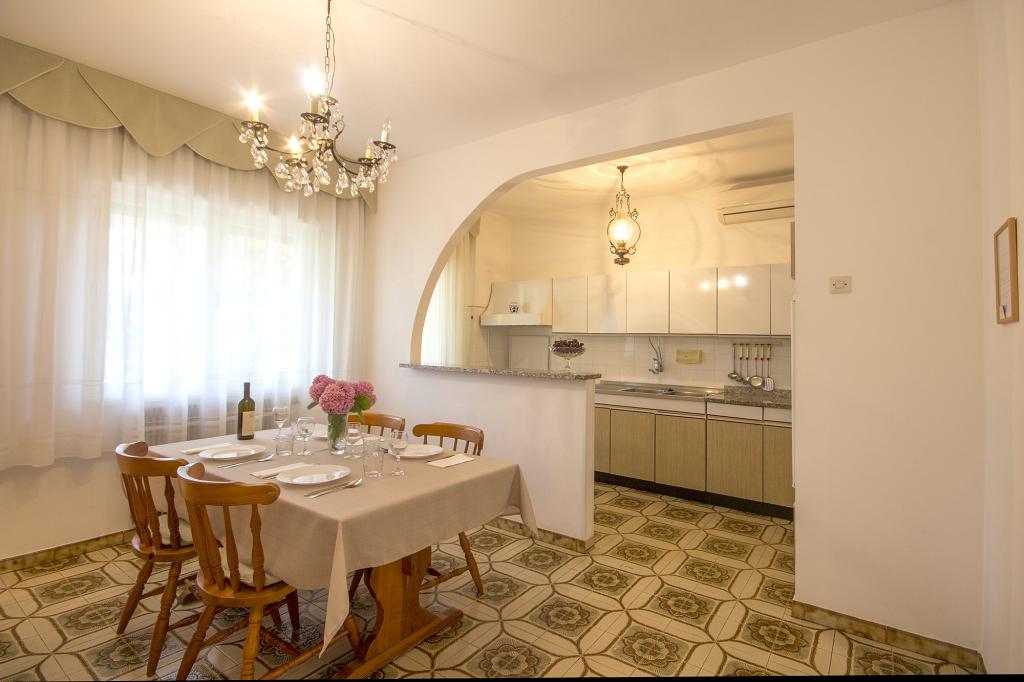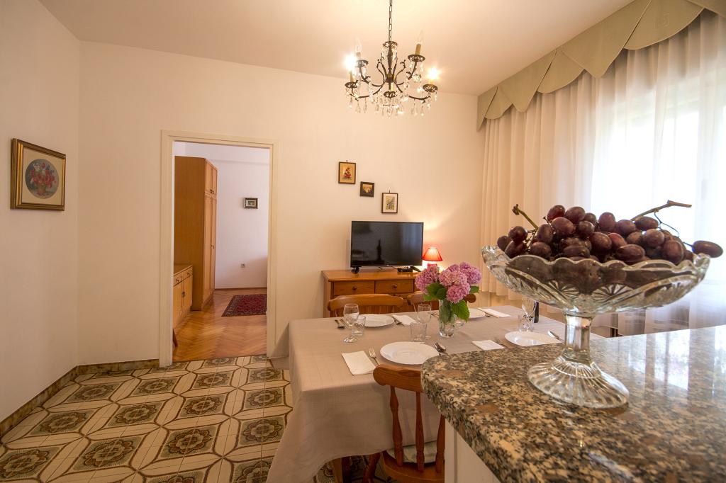 Apartman se nalazi u prizemlju obiteljske kuće. Besplatno parkiralište se nalazi u dovrištu. Do šetnice uz more udaljeni smo 5 minuta hoda, a do centra grada 10 -15 minuta. Plaže su udaljene od kuće oko 800 metara. Apartman ima lijepo uređenu zelenu travnatu površinu sa cvijećem, masl- nama i ostalim ukrasnim biljem. Posebnu pažnju posvećujemo čistoći i urednosti apartmana i okoliša.