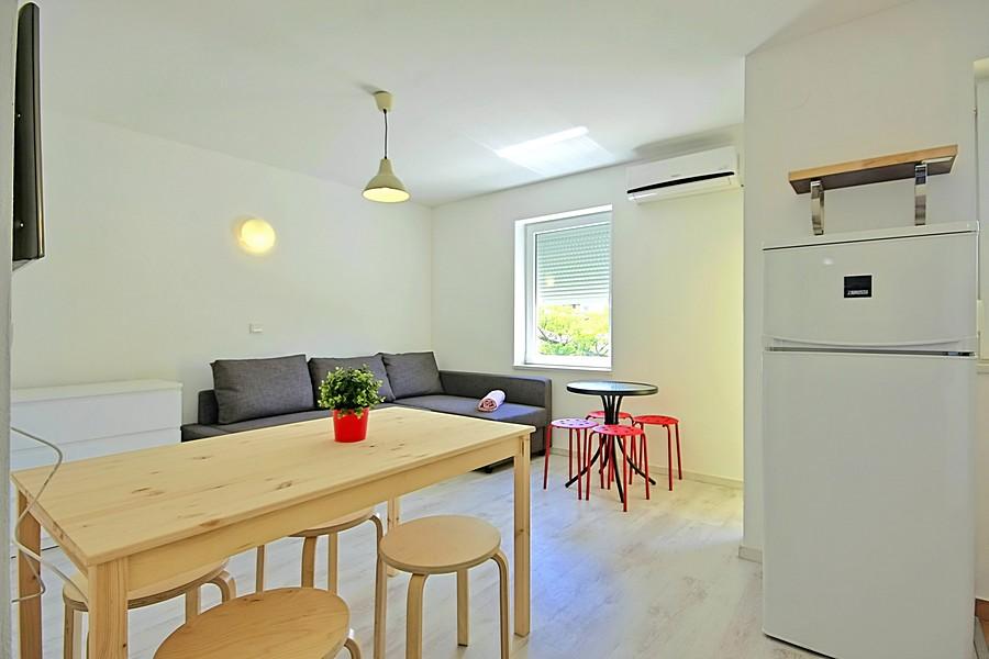 Pročitaj više Smještajne jedinicePrijava u apartmane je moguća iza 14 h, a odjava je do 10h. Ako se prijava vrši iza 18h potrebno je posebno naglasiti! U objektu mogu boraviti djeca svih dobi. Djeca u dobi od 2 i više godina smatraju se odraslima u ovom objektu. Kućni ljubimci mogu boraviti uz cijenu 7 eur/noć. Prilikom rezervacije uplaćuje se avans od 30% ukupnog iznosa. Depozit za eventualne štete je 100,00 eur u gotovini. Plaća se na dan dolaska, a vraća se na dan odlaska nakon pregleda apartmana da nije počinjena šteta. Za 2 ili manje noćenja cijena je viša 20%. U srpnju (julu) i kolovozu (augustu) na snazi je minimalno noćenje od 3 dana. Boravišna taksa i završno čišćenje su uračunati u cijenu i nemate nikakvih dodatnih troškova! Na sve Vaše upite odgovaramo odmah, a najkasnije u roku 24h!