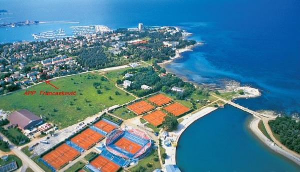 Umag, atraktivni apartmani od 2-6 osoba 200 m od plaže na elitnoj lokaciji Punti. Udaljen samo 220 m tenis centra Stella Maris ATP Croata open, besplatni privatni parking (kako je kuća u blizini plaže, to je parking zona). Dva privatna parka u borovima i zelenilu cca 1000 m2 sa korištenjem grill-a. U neposrednoj blizini nalaze se vrhunski restorani, Wellness centar, Casino, te brojne ostale turističke usluge.