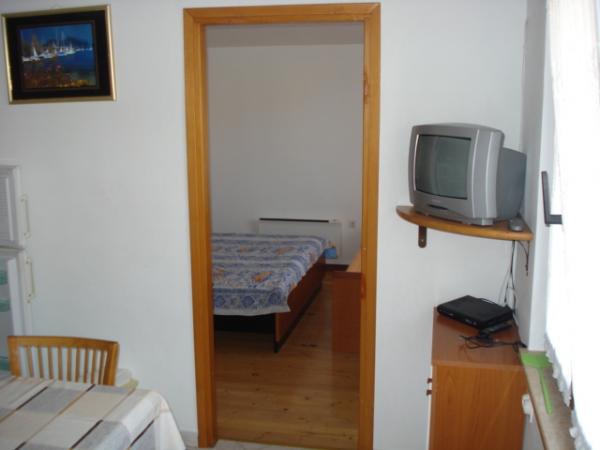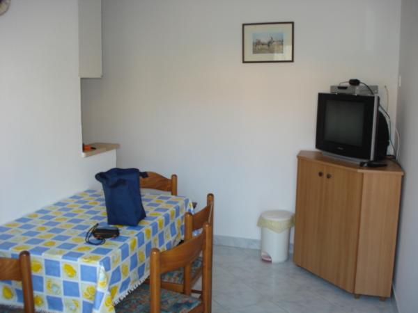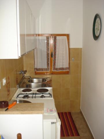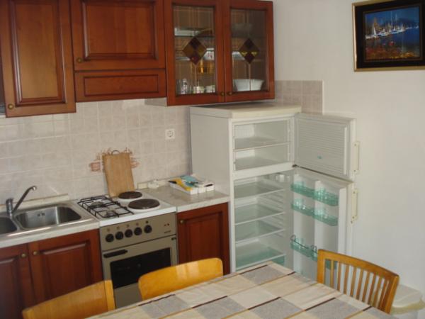 Apartman za 5 osoba ima dvije spavaće sobe, potpuno opremljenu kuhinju, WC sa tuš kabinom i perilicu rublja, satelitski TV i terasu sa pogledom na more. Apartman je opremljen plahtama i ručnicima.