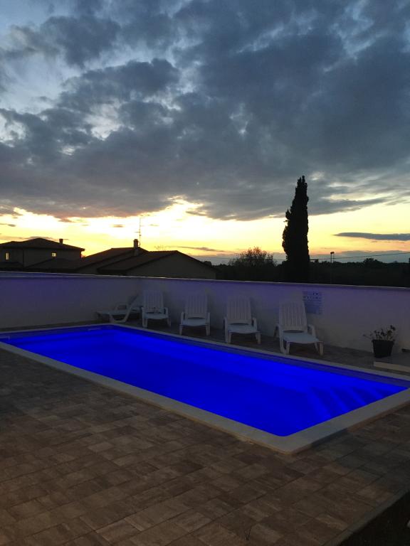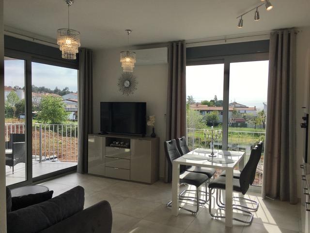 Apartmani Mirella 4 nalaze se u novosagradjenoj rezidenci Lavanda sa pogledom na more i prekrasnim pogledom na sunčani zalazak. Do mora i prekrasne pješčane plaže je samo 150m. Trgovine, pekara i restorani na 200m. Do centra Umaga 3km. Uz more je šetnica sve do centra Umaga a mogućnost je prijevoz sa turističnim vlakom. Apartmani su klimatizirani i kompletno opremljeni sa svim aparatima. Kupaona sa masažnim tušom, veš mašinom, fen, pegla. Kuhinja sa perilicom sudja, mikropećnica, caffe aparat, kuhalo za vodu veliki frižider sa zamrzivačem i sve ostalo da se gost osjeća kao doma. Na korištenje je besplatni internet i osiguran parking. U cijenu je uključeno korištenje bazena, ležaljki, tuša, dvosedi, stol i stolice u nadkrivenom dijelu terase pored bazena. Hvala što ste izabrali Apartmane Mirella, nadam se da ćemo za uzvrat udovoljiti vašim željama za vrijeme boravka u našim apartmanima. Cilj nam je vaše zadovoljstvo i preporuka. Dragi gosti, dobro došli u Apartmane Mirella!