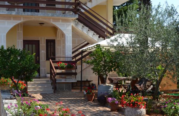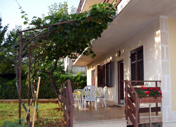 Apartman u prizemlju obiteljske kuće sa terasom i okućnicom. Sastoji se od kuhinje, kupaonice s tuš kabinom, dviju spavaćih soba i terase. Udaljen je 15 minuta hoda do centra grada i 20 minuta hoda do najbliže plaže. Nalazi se u mirnom naselju.