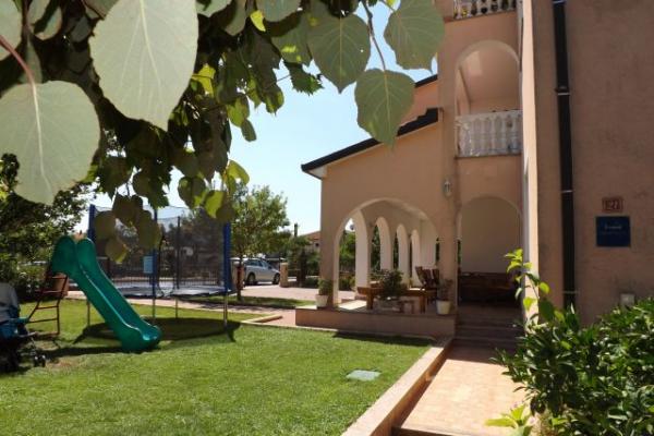 U pitoresknom istarskom gradiću Umagu koji nudi obilje sportsko-rekreacijskih sadržaja iznajmljuje se ugodna, komforna kuća s tri apartmana za 4, 6 i 2+2 osobe čiji je max. kapacitet 14 osoba. Dva manja apartmana nalaze se u prizemlju, a apartman za 6 osoba nalazi se na 2. katu. Opremljeni sa satelitskom tv i priključkom za Internet. Svi apartmani imaju terasu, prostor za igru, parking, grill. Ručnici i posteljina uključeni u cijenu, korištenje perilice u dogovoru s vlasnicom objekta. Kućni ljubimci dopušteni uz nadoplatu od 5 €. Trgovina i restorani do 50 metara, teniski tereni 1 km. U krugu do 500 m naći ćete banku, poštanski ured, ljekarnu, liječnike. Blaga klima, savršena pozicija objekta, gostoljubivi vlasnici, dobra opremljenost apartmana…sve to ćete dobiti dolaskom u Umag pa ćete odmor u ovom lijepoj kući sigurno htjeti ponoviti!