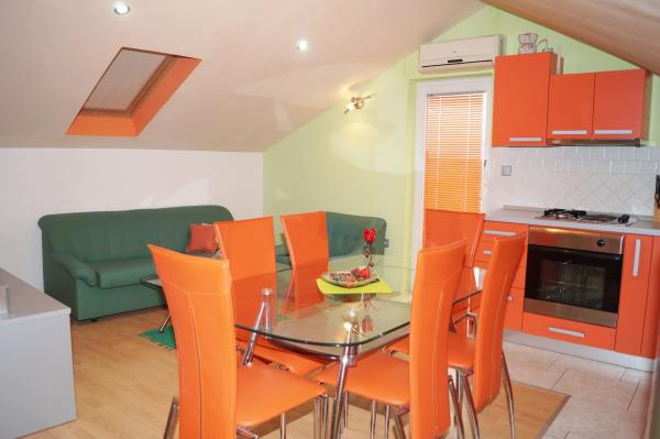 ponudi imamo tri novo izgrađena apartmana u mirnom i pristupačnom dijelu Vela Luke. Apartmani su potpuno i moderno opremljeni te je osigurano parkirno mjesto za goste . Svaki od apartmana ima terasu s pogledom . Apartmani se nalaze 450m od centra grada te 500m od mora. Najbliža plaža je udaljena 10 min. šetnje od apartmana ili 3.min automobilom. Apartmani A2+2 se sastoje od kuhinje, wc, sobe, terase sa rostiljem i pogledom te osigurano parkirno mjesto. Aprtman A4+2 se sastoji od kuhinje, dnevnog boravka, hodnika, wc-a, dvije spavaće sobe, velike terase sa predivnim pogledom i rostiljem te osiguranim parking mjestom.