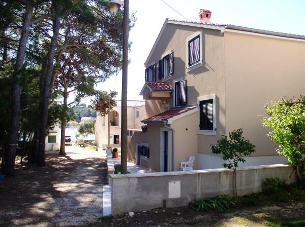 Suvremeno opremljeni apartmani u mirnoj uvali, s pogledom na more. Kuća se nalazi u blizini svjetski poznate pješčane plaže Sakarun i svjetionika Veli rat s prekrasnom šljunčanom plažom i pogledom na otvoreno more. Zapadna strana Dugog otoka pruža nebrojene mogućnosti za ribolovce, posebno podvodni ribolov, razgledavanje brodskih olupina, uživanje u vožnji biciklom i kupanje u skrivenim uvalama.